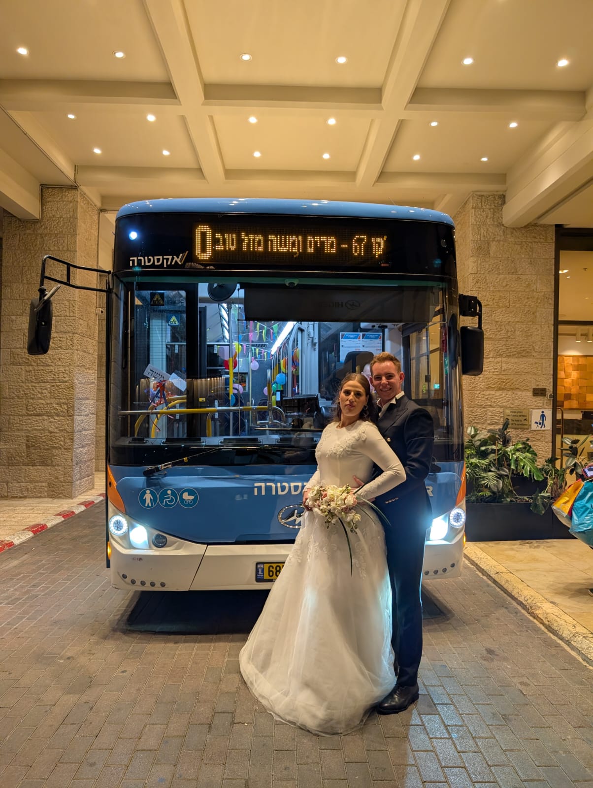 השבוע נסגר המעגל: אוטובוס אקסטרה מקושט הפך לרכב חתן-כלה של הזוג הצעיר. נוסעים והנהגים הופתעו לראות את הזוג מצטלם בדיוק במקום שבו התחיל המסע המשותף שלהם.