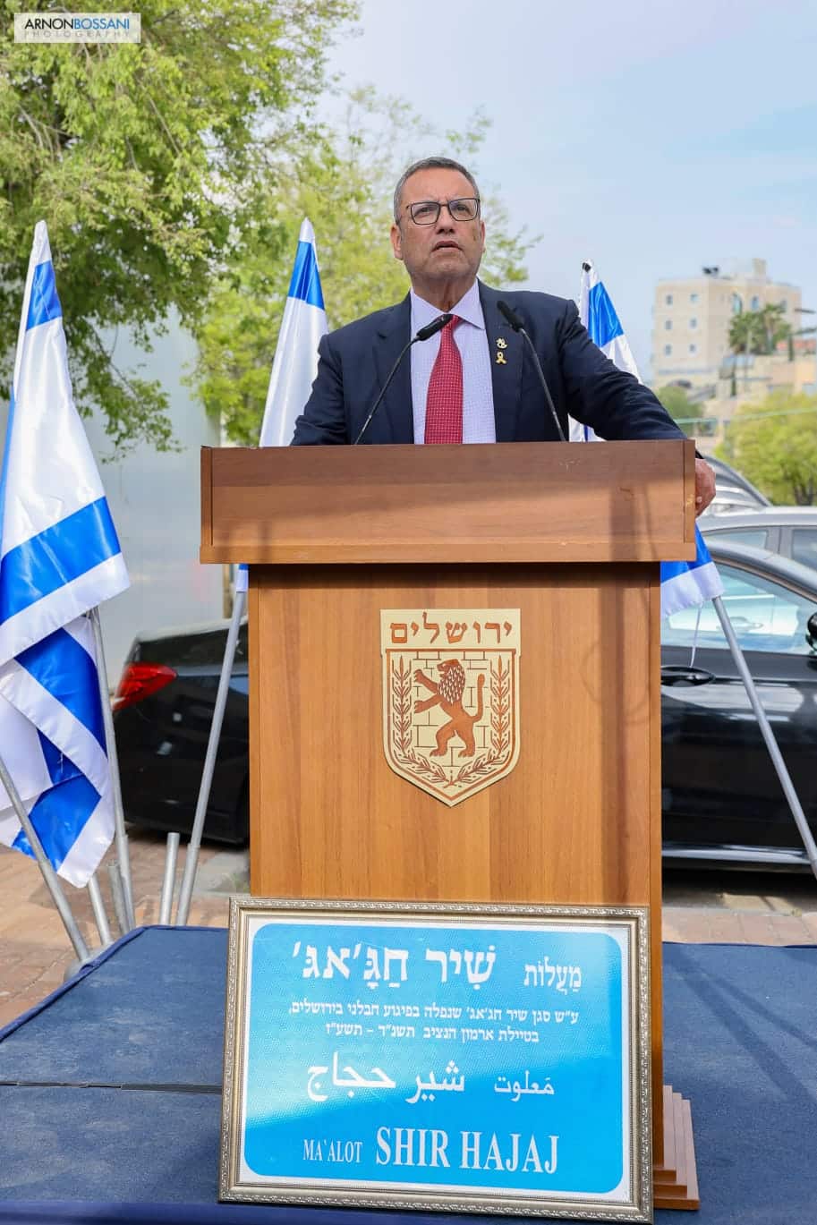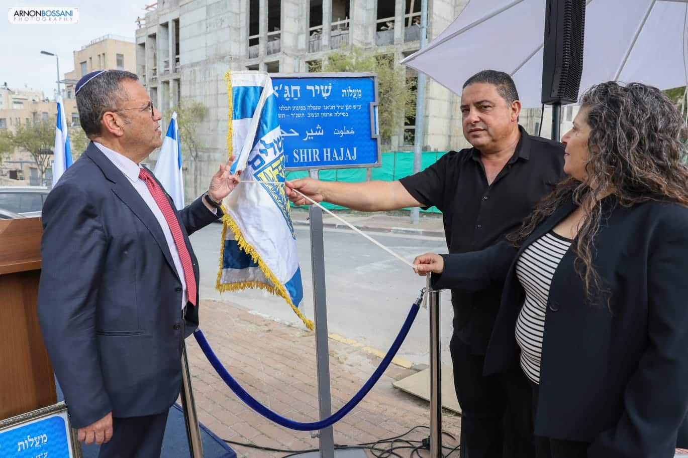 ראש העיר ירושלים, משה ליאון, חנך קריאת מעלות ע"ש סגן שיר חג'אג' ז"ל ברח' חיים קורבסקי 5 בשכונת נוף ציון
