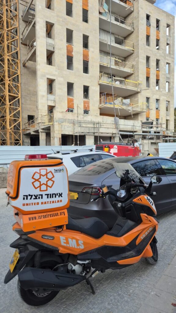 צוותי הרפואה של איחוד הצלה העניקו סיוע רפואי ראשוני לפועל (כבן 30) כתוצאה מנפילה מגובה באתר בנייה בפסגת זאב.