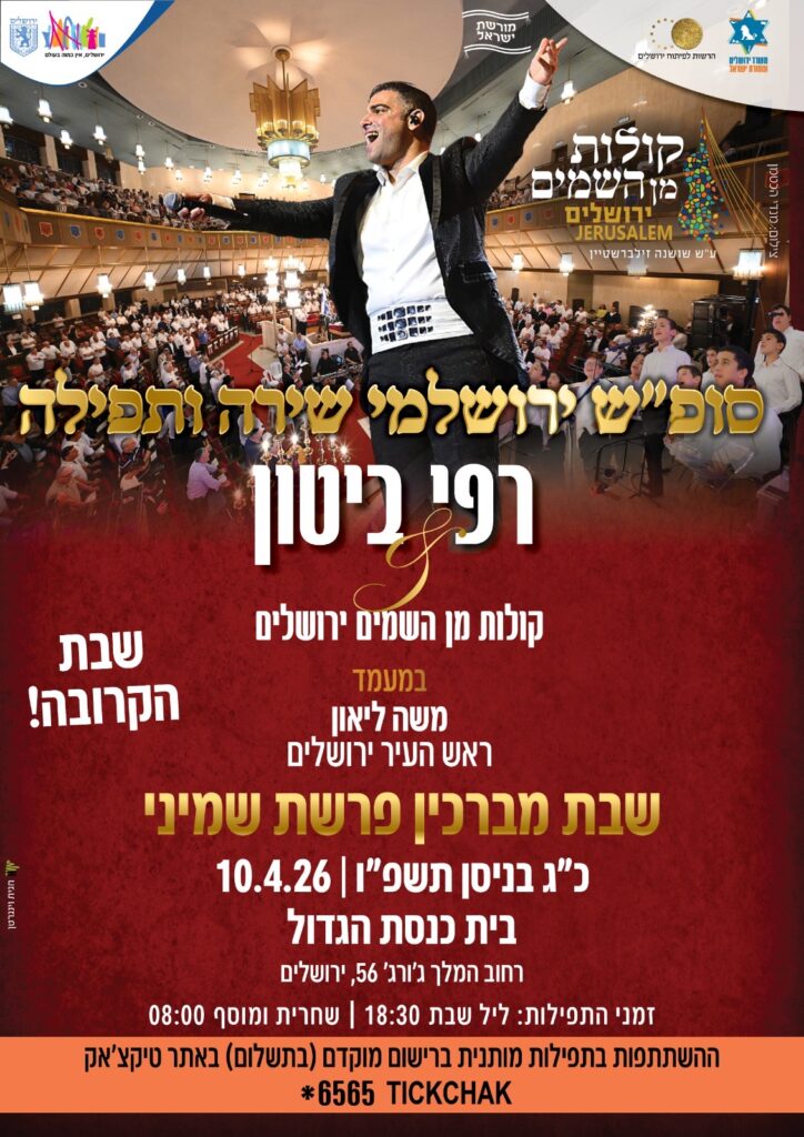 עיריית ירושלים מזמינה את הציבור להשתתף בתפילות שבת הודיה חגיגיות שיתקיימו השבת בבית הכנסת הגדול בעיר, לראשונה מאז ביטול מגבלות ההתקהלות בעקבות הפסקת האש.