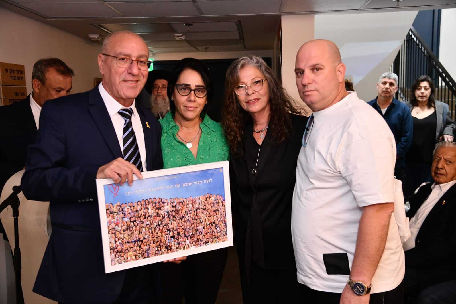 עוד במסגרת הישיבה העניקו האימהות של דור אביטן ודור מלכה זכרם לברכה, תמונה לראש העירייה הנושאת את פניהם של כל הנרצחים באירוע נובה, ביניהם בניהם והתבשרו ממנו שהשנה בטקס הממלכתי, שיתקיים ביום שלישי הבא (ט׳ באדר ב׳ 19.3) יניפו את הדגל משפחות הנרצחים והנופלים במלחמת ״חרבות ברזל״.