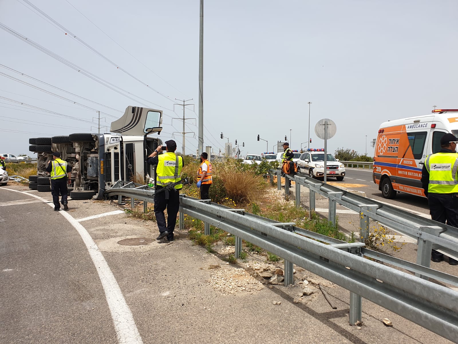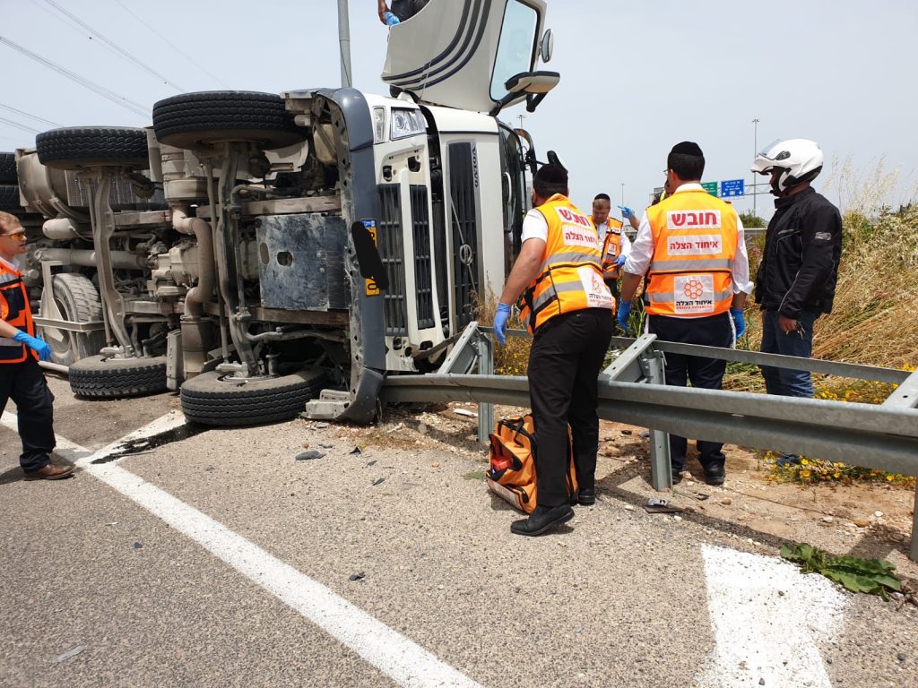 כביש 431: תאונת דרכים עם מעורבות משאית הפוכה על צידה