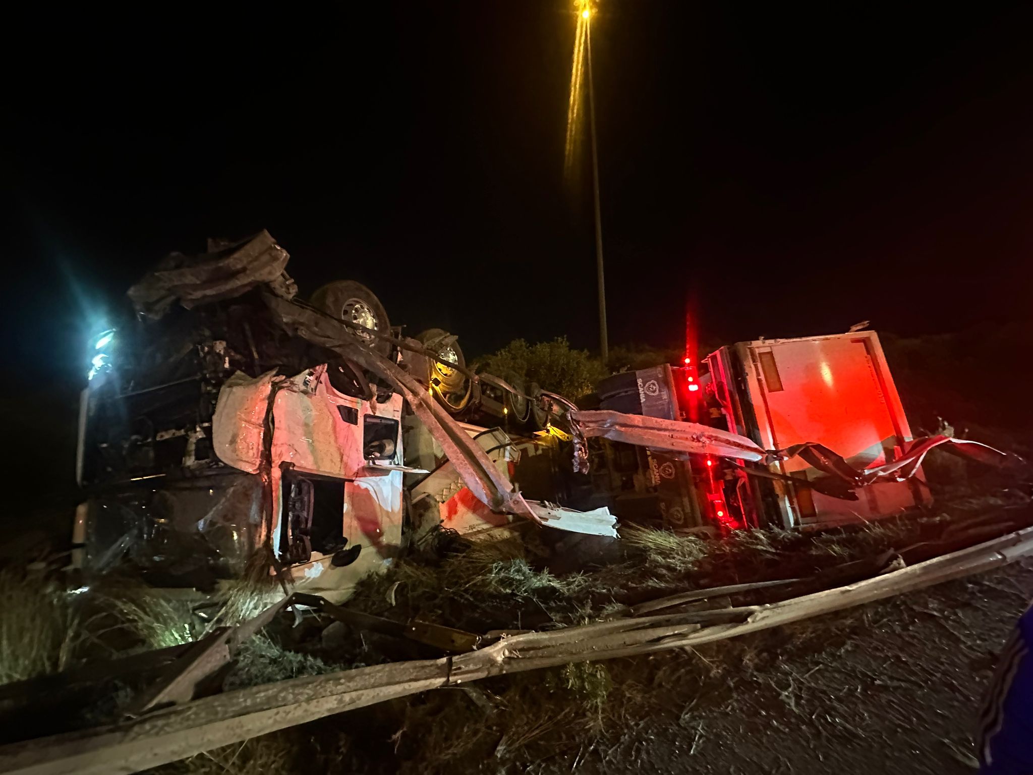 כביש 6: משאית ורכב פרטי התהפכו הלילה לתעלה סמוך למחלף שורק