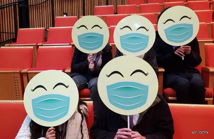 במטרה לשמור על ההנחיות ועל בריאות הקהל, יצרו בהיכל התרבות שלטים איתם מסתובבים הסדרנים במהלך ההצגה ובלי להפריע לצופים מזכירים לאלו שהורידו את המסכה בצורה ידידותית ונעימה לעטות אותה ולהמשיך ליהנות מההצגה.