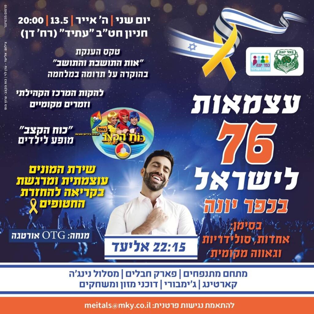 את אירועי ערב יום העצמאות ה-76 למדינת ישראל, תציין השנה כפר יונה בצורה אחרת, ובסימן הערכים: אחדות, סולידריות וגאווה מקומית