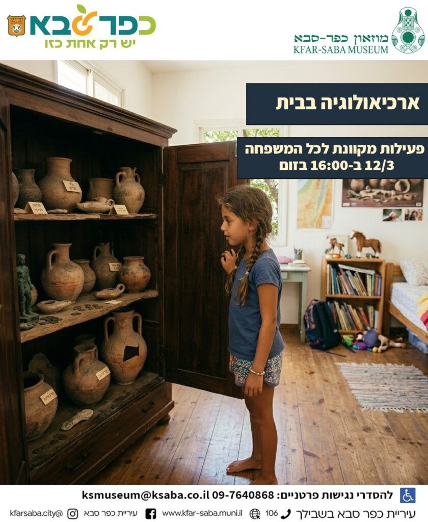 ארכיאולוגיה בבית- פעילות מקוונת לכל המשפחה של מוזיאון כפר סבא ימי המלחמה מאתגרים את כולנו, הורים וילדים כאחד. ביום חמישי 12/3 בשעה 16:00 יקיים מוזיאון כפר סבא פעילות מקוונת בזום לילדות וילדים: ארכיאולוגיה בבית.