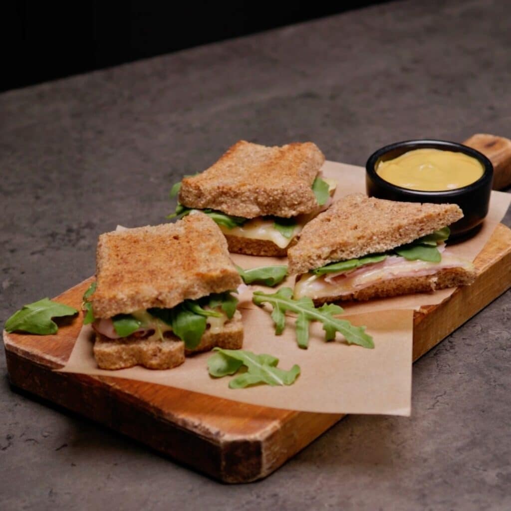 - שימו את חצי הלחם השני מעל וצלו את הכריך בתנור למשך שלוש דקות.