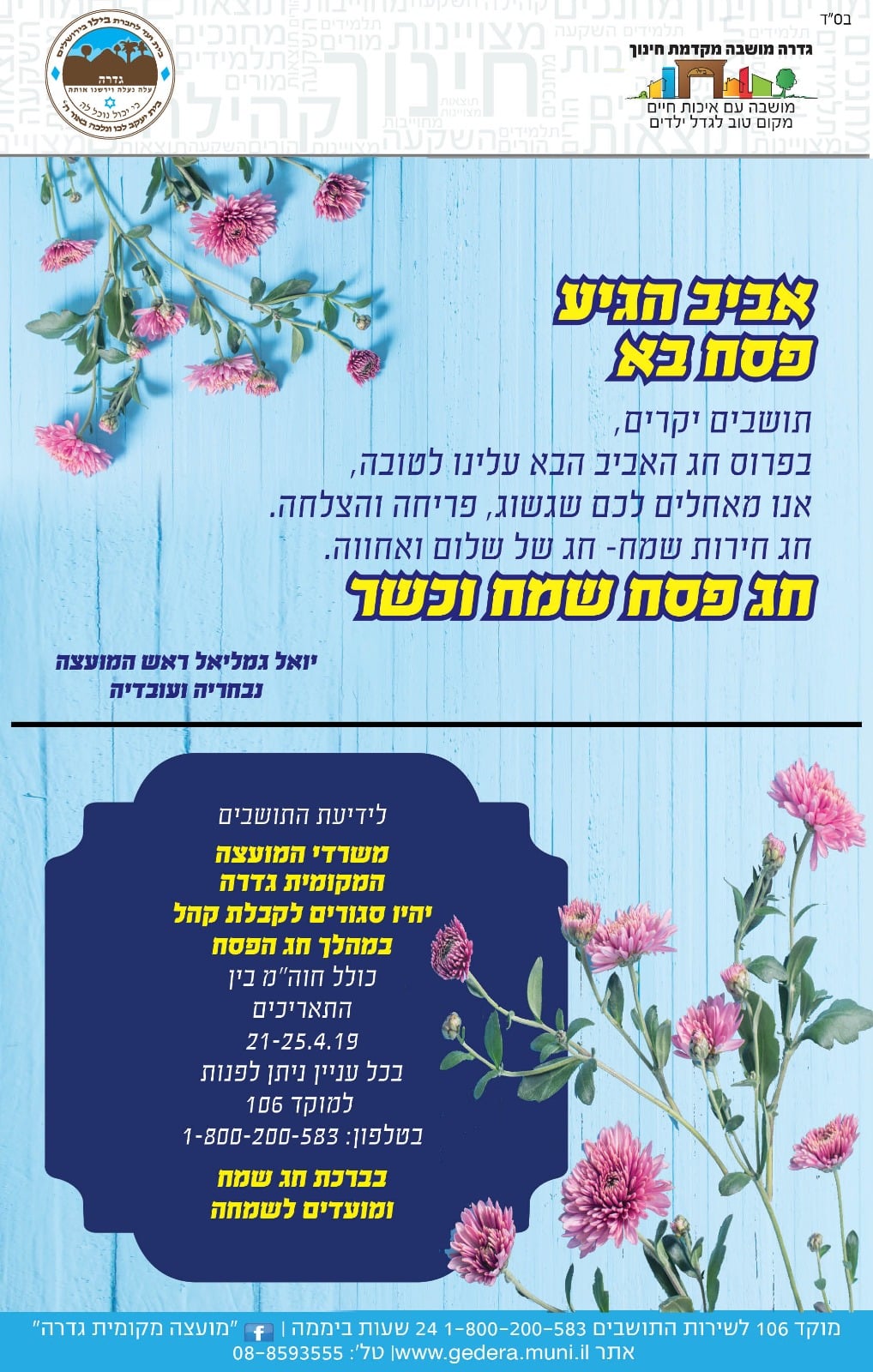 חשד לעבירות מין בגן ילדים בתל אביב; מנהלת הגן ובעלה נעצרו זמני כניסת ויציאת השבת 10-11.4.26; פרשת שמיני המתנה דרוכה: פיקוד העורף צפוי לעדכן את הנחיות ההתגוננות במרכז הארץ בשעות הבוקר זוכרים בסלון: מזכרת בתיה מציינת את יום הזיכרון לשואה ולגבורה במפגש מרגש שגרה תחת אש ברחובות: מדרג ההתגוננות נותר ללא שינוי ומאפשר פעילות מלאה ניסים גוזלן בהודעת הרגעה: "הכל בסדר בבאר יעקב, נקיים הערכת מצב לגבי הלימודים" צפו בסרטונים: שיגורים מלבנון לעבר גוש דן, השפלה ואשדוד; אין נפגעים רז קינסטליך בהודעת הרגעה: אין נפילות או נזק בראשון לציון בעקבות המטח תגובה נחרצת: צה"ל השמיד כ-10 משגרים שביצעו ירי לעבר הצפון החרפת הכוננות ברחובות: ראש העיר הנחה על פתיחת המרחבים המוגנים בבתי הספר רמת גן: מערכת החינוך עוברת ל"מצב צהוב" בשל חשש לירי מלבנון – אלה השינויים הצפויים דריכות באור יהודה: נפתחו המקלטים הציבוריים והמוסדיים לשהיית לילה הזמר הפופולארי מוריס ג'נשווילי חוגג יום הולדת דריכות שיא באשדוד: חשש לירי מלבנון לעבר דרום הארץ – 45 שניות לכניסה למיגון דובר צה"ל מזהיר: ייתכן ירי לעבר אזורים נוספים במדינת ישראל בשעות הקרובות פתח תקווה: שתי נהגות נפגעו בתאונה ברחוב שמואל סלנט שיקלי בבנימין: “הגיע הזמן להיגמל מטרמינולוגיית אוסלו” לפני שריקת הפתיחה: מעצר בבלומפילד בעקבות ניסיון פריצה לשער סכסוך בין משפחות ברהט הסתיים ברצח – כתב אישום הוגש סגולה לשפע: מתכון לחלת הפרנסה לשבת שאחרי פסח