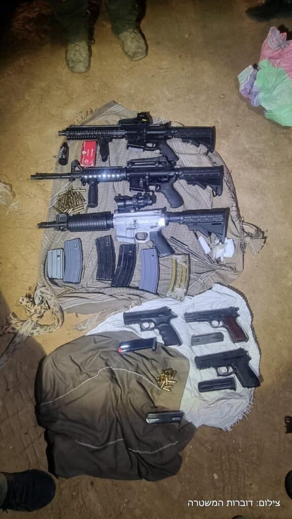 לאחר מעצרם אספה משטרת ישראל את השקים ובתוכם נמצאו: 86 אקדחים, 17 רובים מסוג M16, 15 מכלולים של רובה M16, 158 מחסניות אקדח, 5 חלקי נשק- חלק עליון של רובה M16. בתוך השק שנמצא בשטח ירדן נמצאו: 36 אקדחים, 68 מחסניות אקדח, 34 מחסניות אקדח מלאות ו-20 מכלולים לאקדח.