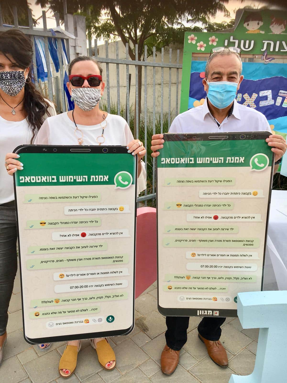 קרן אהרון: "כולי תקווה שהילדים אכן יישמו את האמנה השימוש בווטצאפ, וינהגו בכבוד ברשת החברתית. אני ממליצה לכל מנהלי בתי הספר לתלות את האמנה בין כותלי בית הספר". דניאל אהרון מקלאוד: ״תודה רבה ליואל היקר על המתנה הנפלאה, ושתיהיה לכולנו שנת לימודים מוצלחת״.