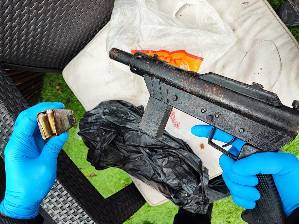 השוטרים ביצעו חיפוש ממוקד במתחם נוסף בו איתרו בחצר הבית פרטי אמל"ח: רובה קרלו, מחסנית ותחמושת מוסלקים.