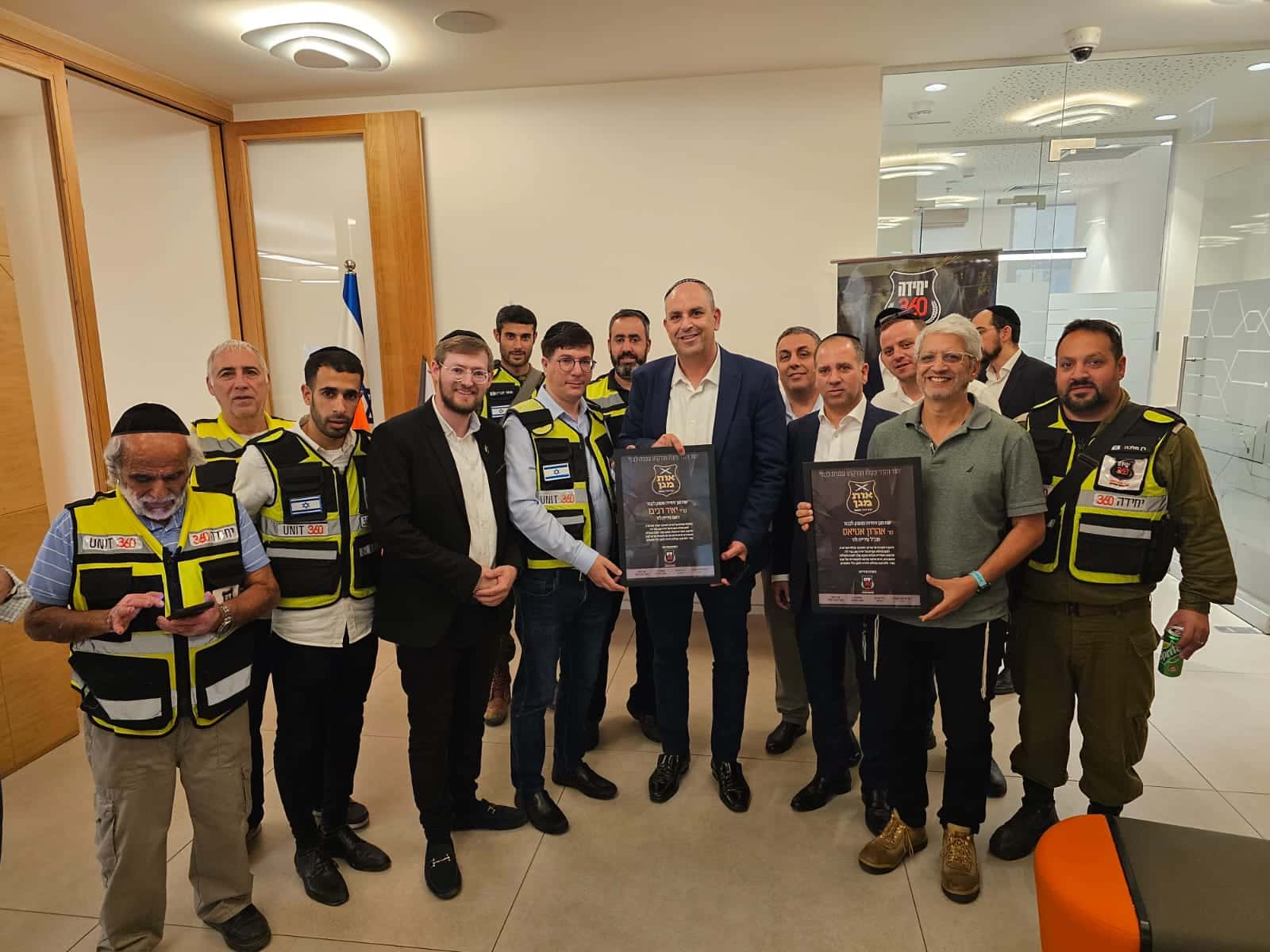 יו"ר יחידה 360 ישראל מורגנשטרן, המייסד חזי שבקס, מפקד היחידה אלחנן רוט וארז משה מפקד צוות לוד, העניקו תעודת הוקרה לראש העיר ולהנהלת העירייה, על התמיכה הבלתי פוסקת והסיוע שהם מעניקים במשך כל ימות השנה להרחבת הפעילות בעיר.