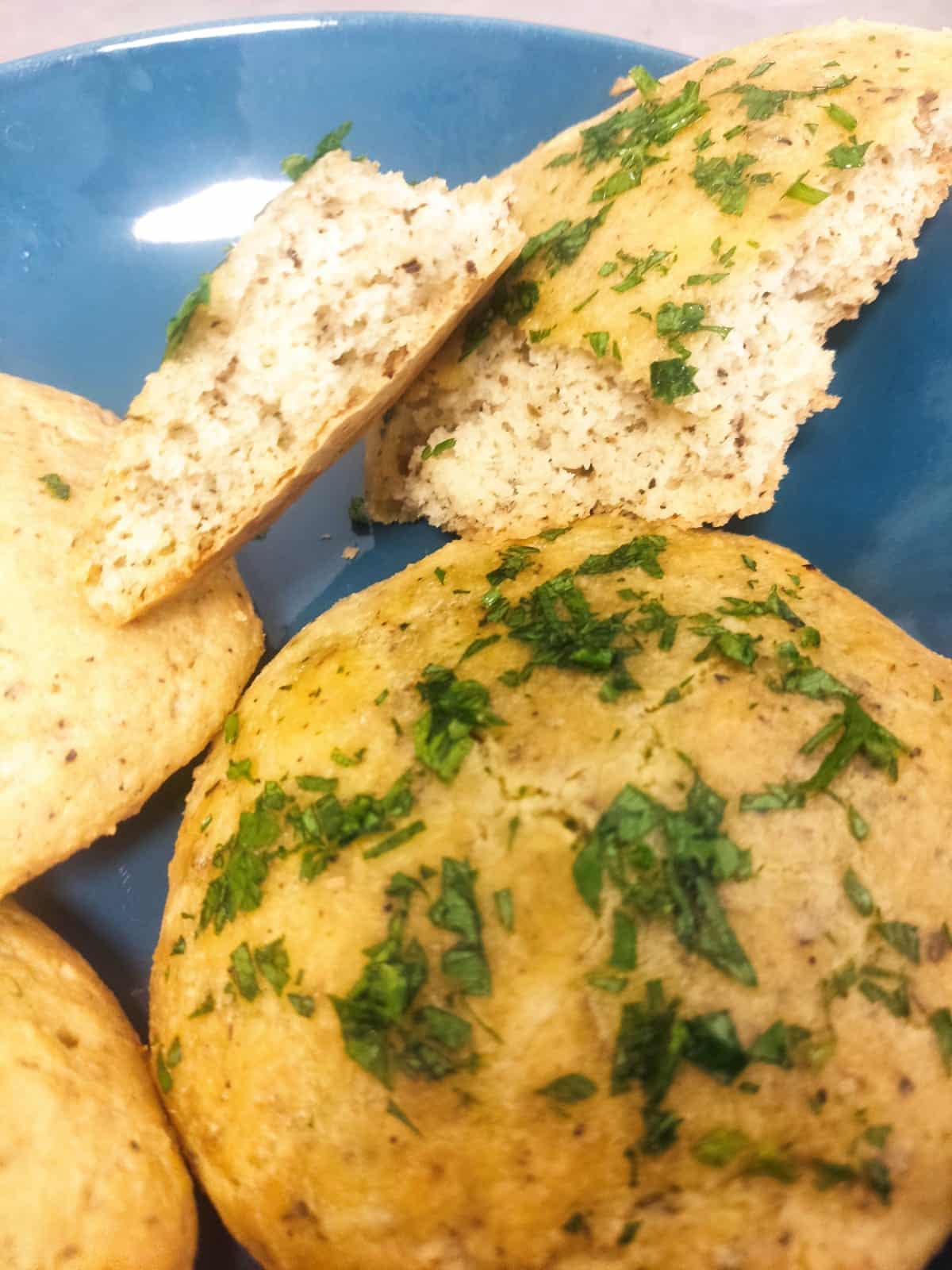 אופציונלי: לאחר האפייה, מברישים את הלחמים השטוחים עם שמן זית ומפזרים פטרוזיליה טריה קצוצה לתוספת טעם.