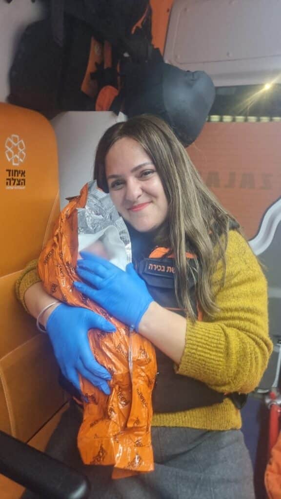 בהגיעם למקום הבחינו באישה עם צירים מתקדמים, האישה הוכנסה לתוך אמבולנס איחוד הצלה ובתוכו צוות האמבולנס החלו בתהליך קבלת לידה, בשעה טובה נולדה בת, לאם ולתינוקת שלום.