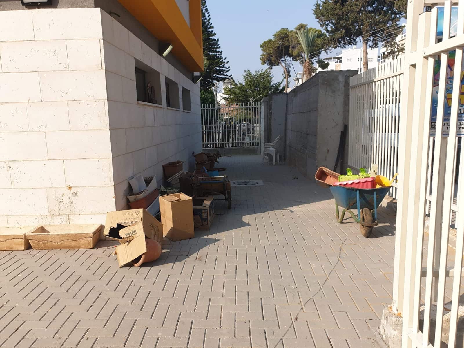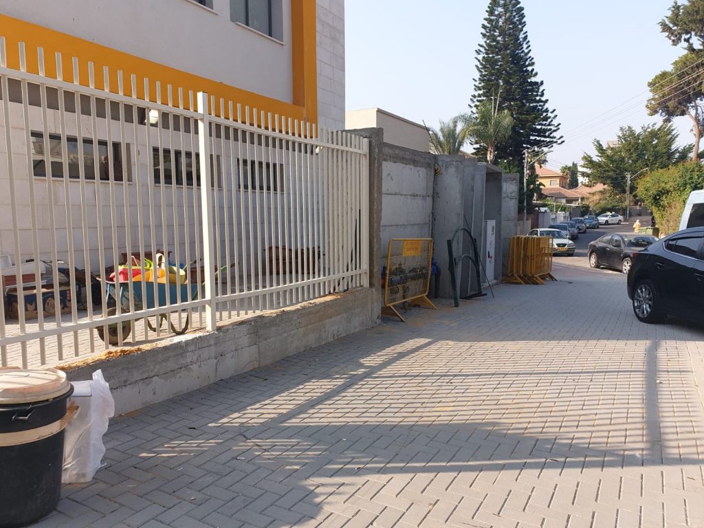 כמו כן, כאשר הילדים נמצאים בחצר הם יכולים לעלות על מדרגות החירום מפני שלא הותקנו שערי בטיחות וכמו כן בכל סביבת המתחם ישנם מחסומים של העיריה, תשתיות הבניין חשופות, אין אינטרקום ליצירת קשר עם הגן. יתרה מכך, בשבוע הראשון ללימודים, כך לדברי אחד ההורים, "השער היה פתוח לכל דכפין, ללא מנעול וללא אבטחה. פועלים היו מסתובבים בסמוך לגני הילדים – עד שההורים הסבו את ערנותם. עם זאת, בגנים עדיין לא מותקנים לחצני ביטחון למקרי חירום ואין מערכת מצלמות בגנים בכלל".