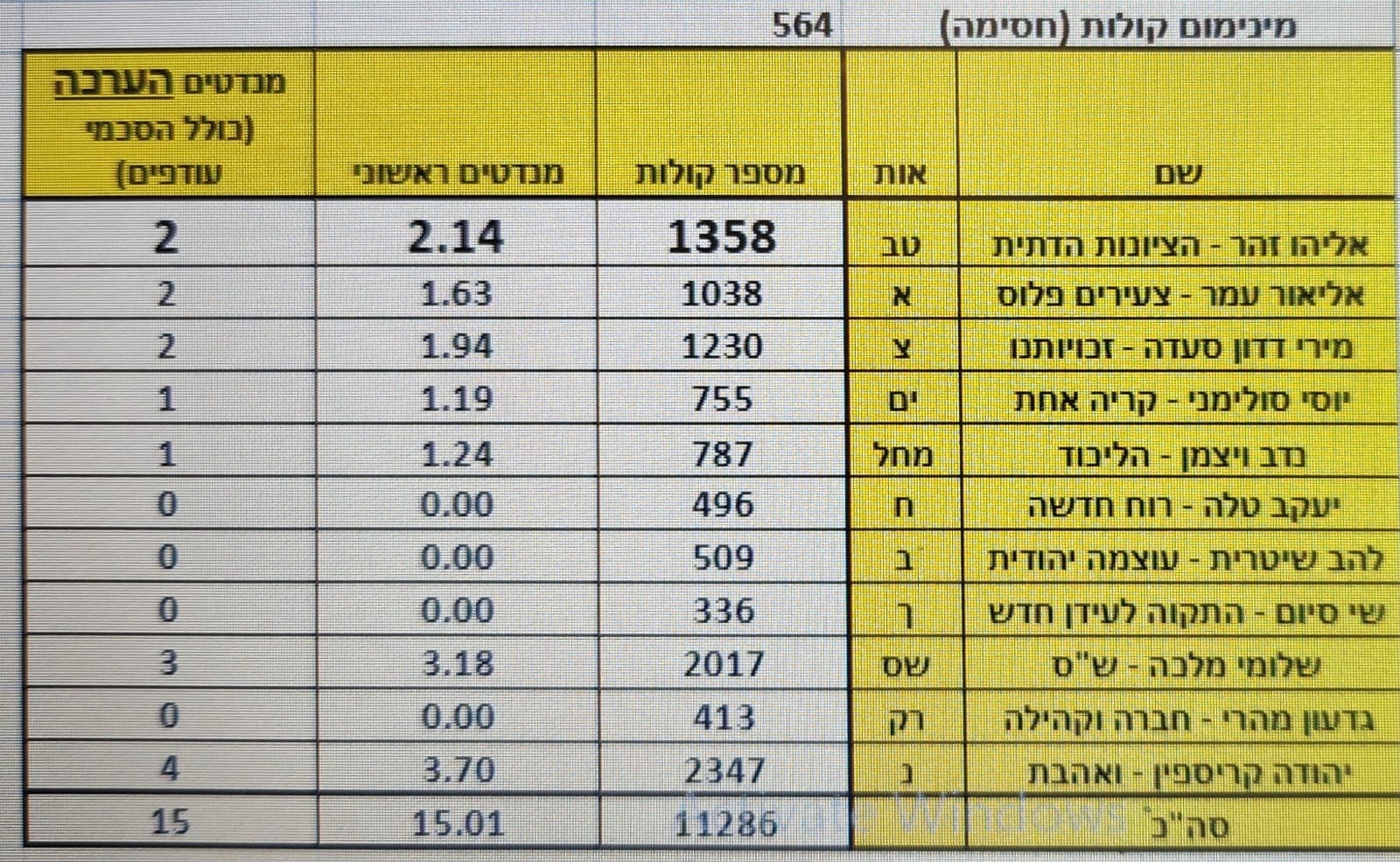 כך מסתמנת חלוקת המנדטים למועצת העיר נכון לשעה זו: