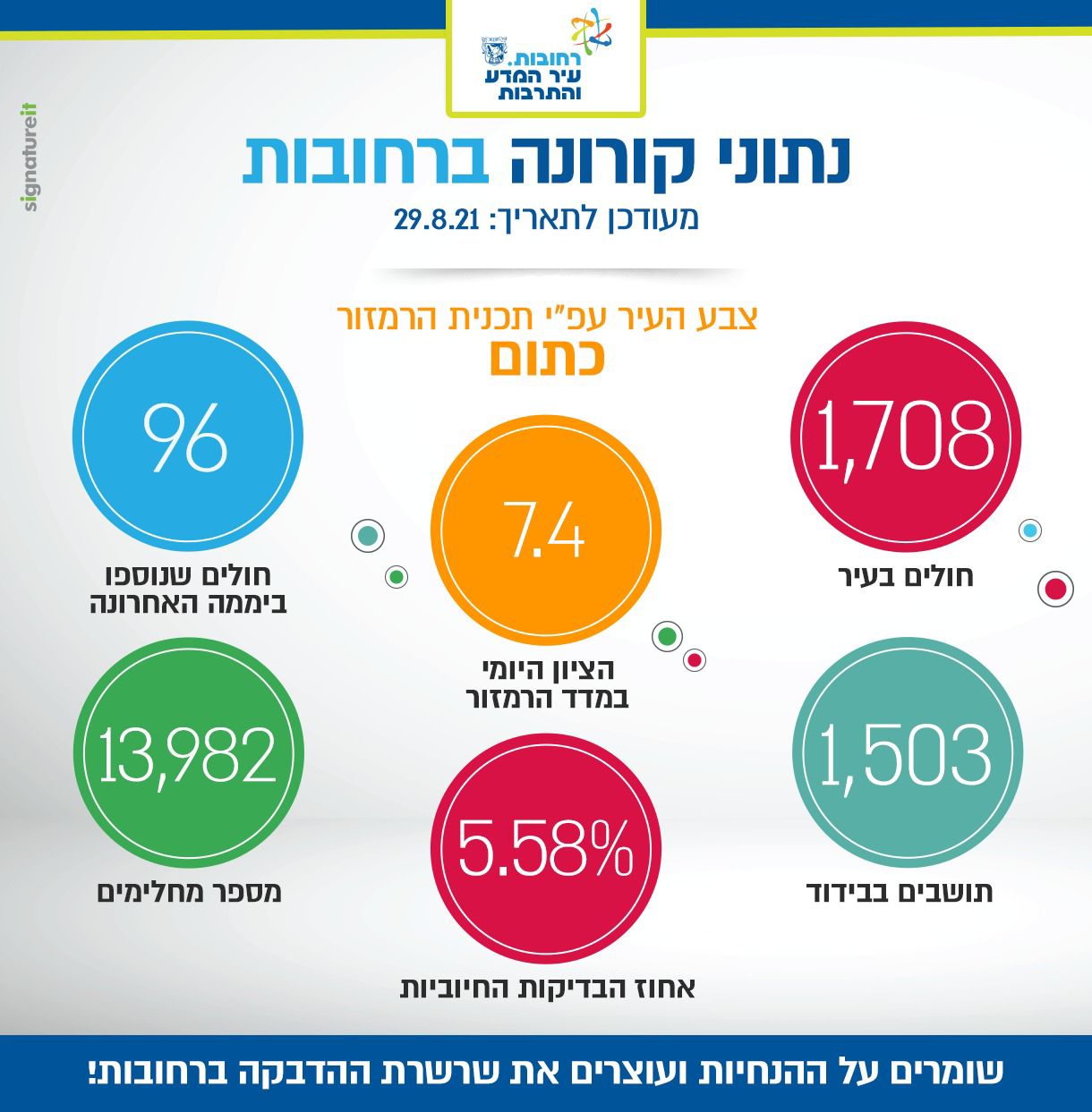 כעת בעיר 1,708 חולים, הציון היומי במדד הרמזור עומד על 7.4 וביממה האחרונה נוספו עוד 96 מאומתים לנגיף. למעלה מ-1,500 תושבים שוהים בבידוד, מספר המחלימים עומד על כ-14 אלף תושבים.