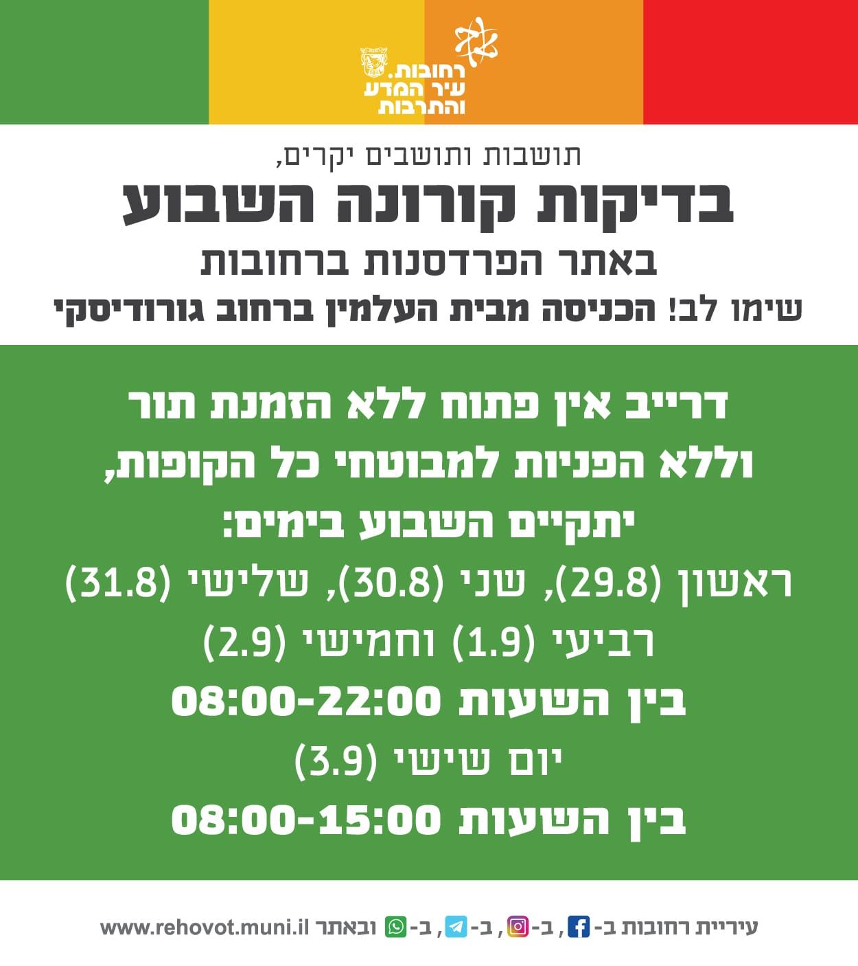 רחובות עברה מאדום לכתום – כך מדווחת הבוקר (ראשון) עירית רחובות. ראש העיר, רחמים מלול פנה לתושבים: ״אל תשמרו על שאננות! המשיכו להקפיד על מסכות ושמירת מרחק והיגיינה, ולכו להתחסן! רק ביחד נחזיר את רחובות לירוק".