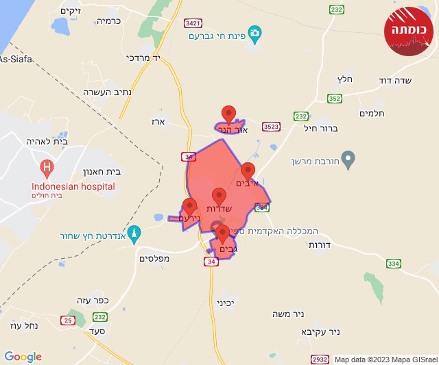 האזעקה נשמעה בגבים, מכללת ספיר, שדרות, איבים, ניר עם, אור הנר. התושבים מדווחים על פיצוצים שנשמעו. ככל הנראה מדובר ביירוטים.