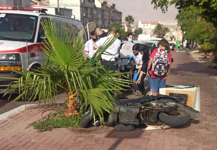שני רוכבי אופנוע בני 72 ו-19 נפגעו באורח קל לאחר שהתנגשו זה בזה ברחוב רודד באילת. כוחות ההצלה העניקו לשניים טיפול רפואי ופינו אותם לבית החולים יוספטל עם חבלות קלות.