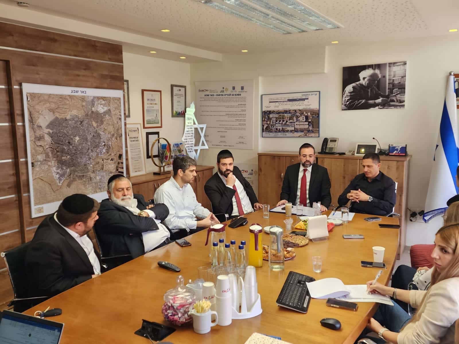 במסגרת הביקור בבירת הנגב קיים השר ישיבת עבודה באולם מועצת העיר יחד עם ראש העיר דנילוביץ', סגן ראש העיר אושרי אביכזר, מנכ"לית העירייה אבישג אבטובי, חברי מועצה, מנהלי אגפים וגורמים נוספים בעירייה.