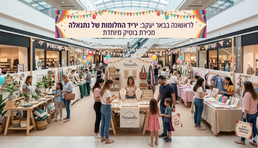 הבשורה שחיכו לה תושבי באר יעקב והסביבה הגיעה: "יריד החלומות של נתנאלה", הידוע בבחירה הקפדנית של יוצרים ועסקים מקומיים ייחודיים, מקיים לראשונה מכירת בוטיק יומית בקניון באר יעקב.