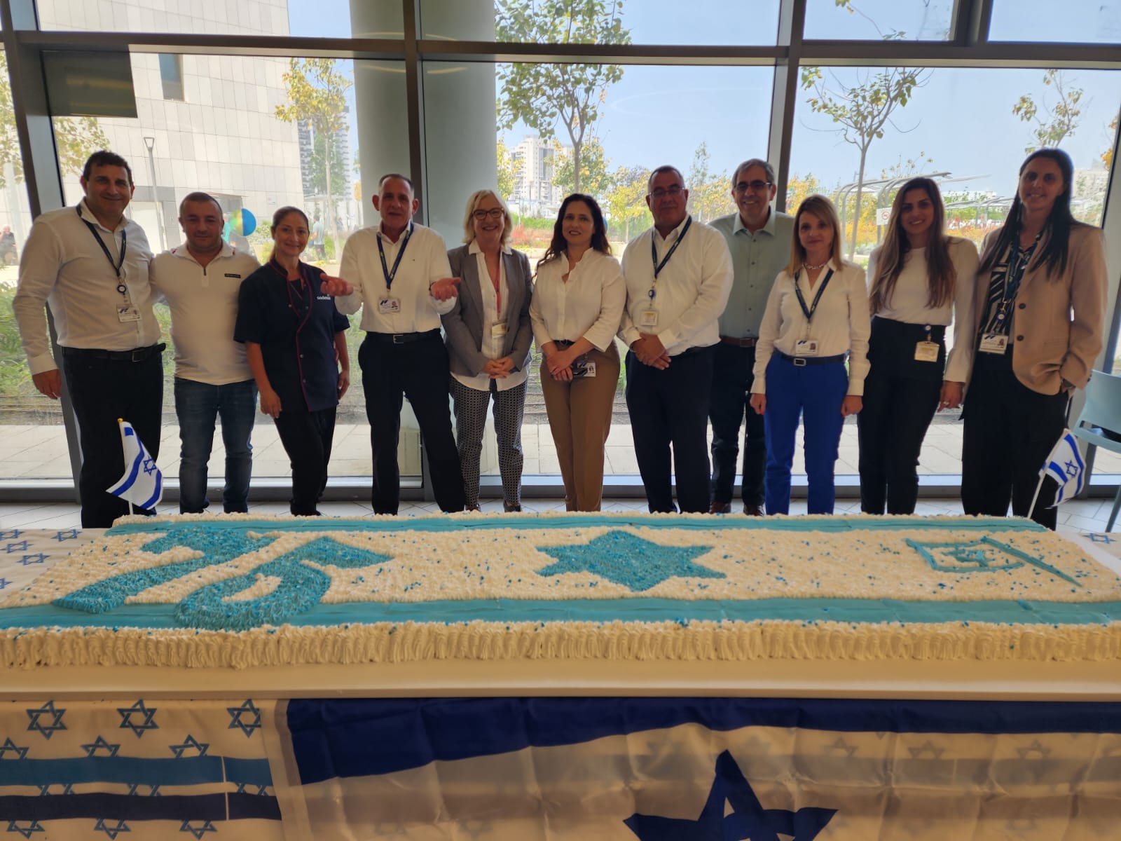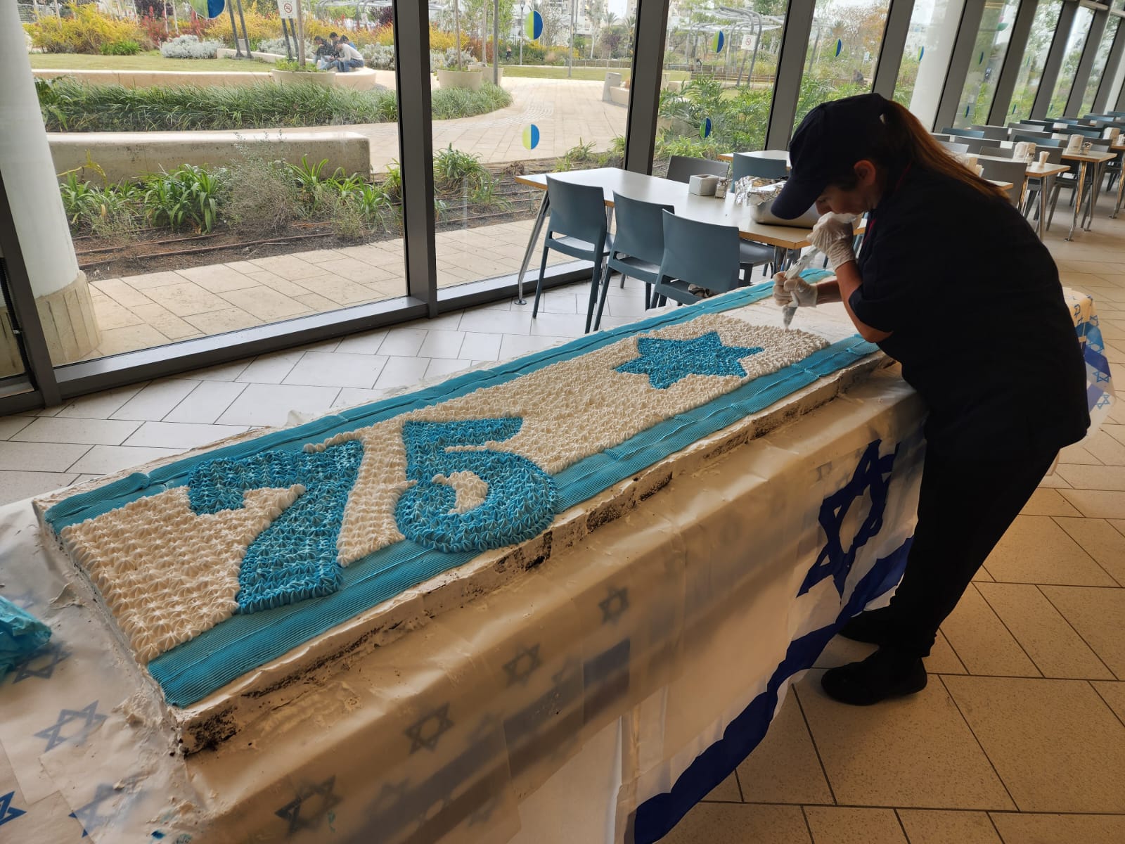 לרגל יום העצמאות, עוגת ענק, בגודל 80 ס"מ על 2.5 מטר, בדמות דגל ישראל ועליה המספר "75" הוכנה בביה"ח הציבורי אסותא אשדוד.