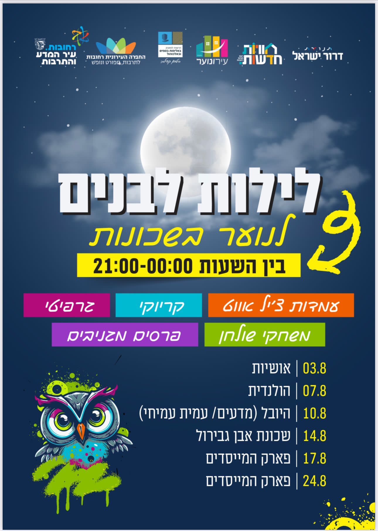 מדובר בפעילות ייחודית לבני ובנות נוער במטרה לתת מענה חינוכי שימנע שוטטות או מטרדי רעש בשכונות ברחבי העיר, בגנים ובפארקים בשעות הלילה.