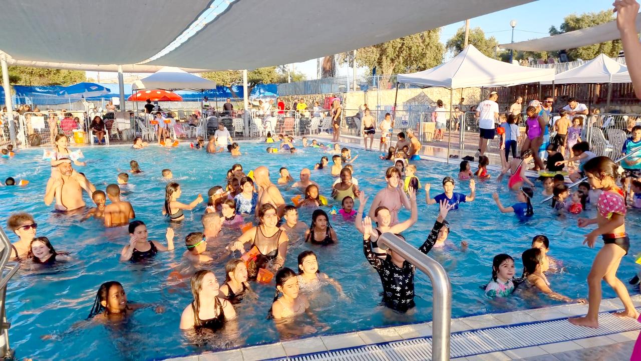 ראש העיר עו"ד יאיר רביבו שהגיע לצפות בתושבים נהנים לקראת חג המים, איחל להם חג שמח והנאה ביום הבריאות והכיף בבריכה העירונית.