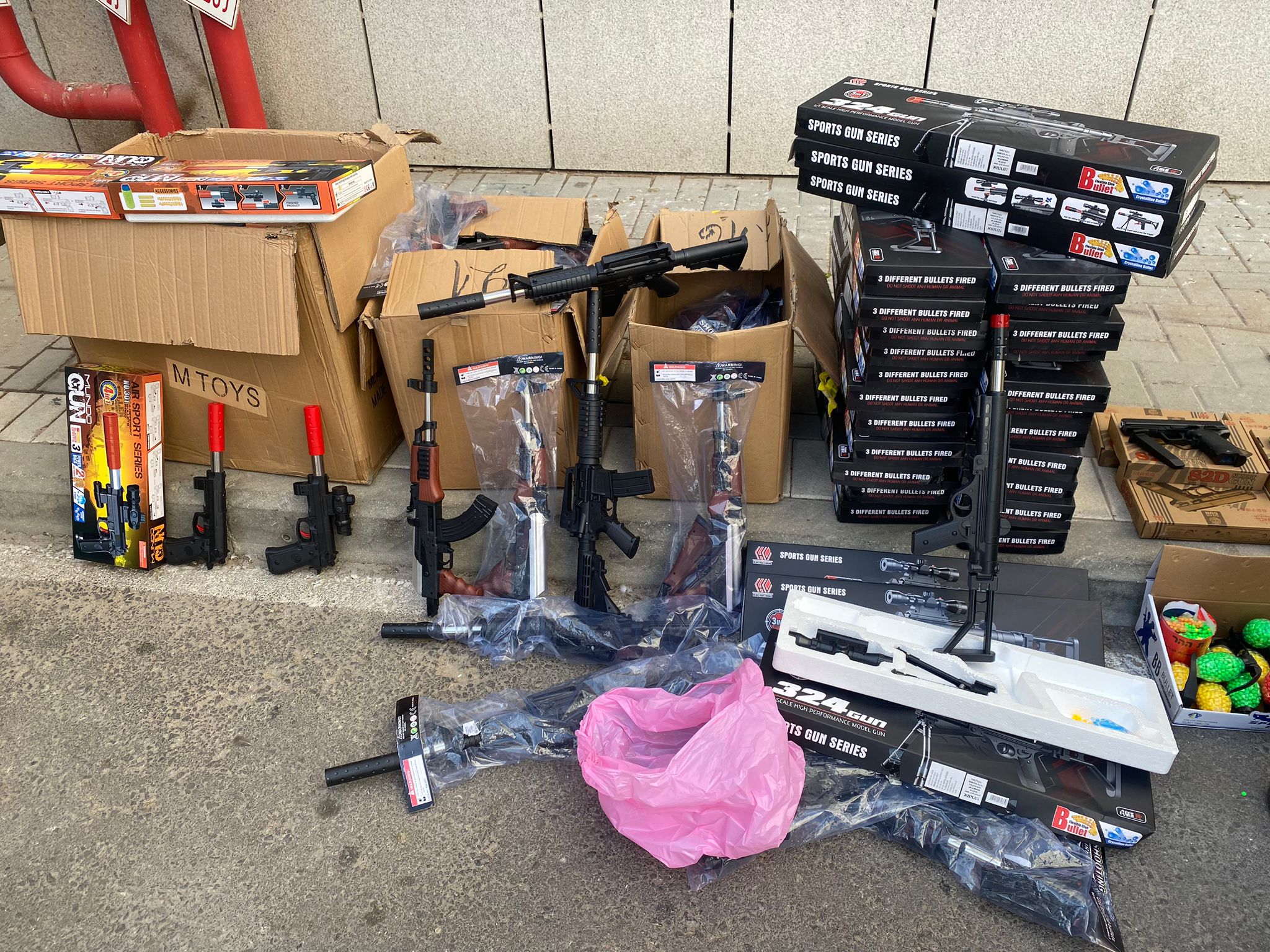 משטרת אשדוד באמצעות משרד רישוי עסקים ויחידת השיטור העירוני ובשיתוף עם מנהל האכיפה והמדידה במשרד הכלכלה, פשטו היום בשעות הצהריים על בית עסק בעיר ששיווק לציבור 'צעצועים מסוכנים' בהם נשקי 'איירסופט' וכדורים שעלולים לגרום לפציעות קשות, וחלקם אף נחזים לנשקים אמיתיים כדוגמת נשק 'קלאצ'ניקוב' שהיה בשימוש המחבלים.