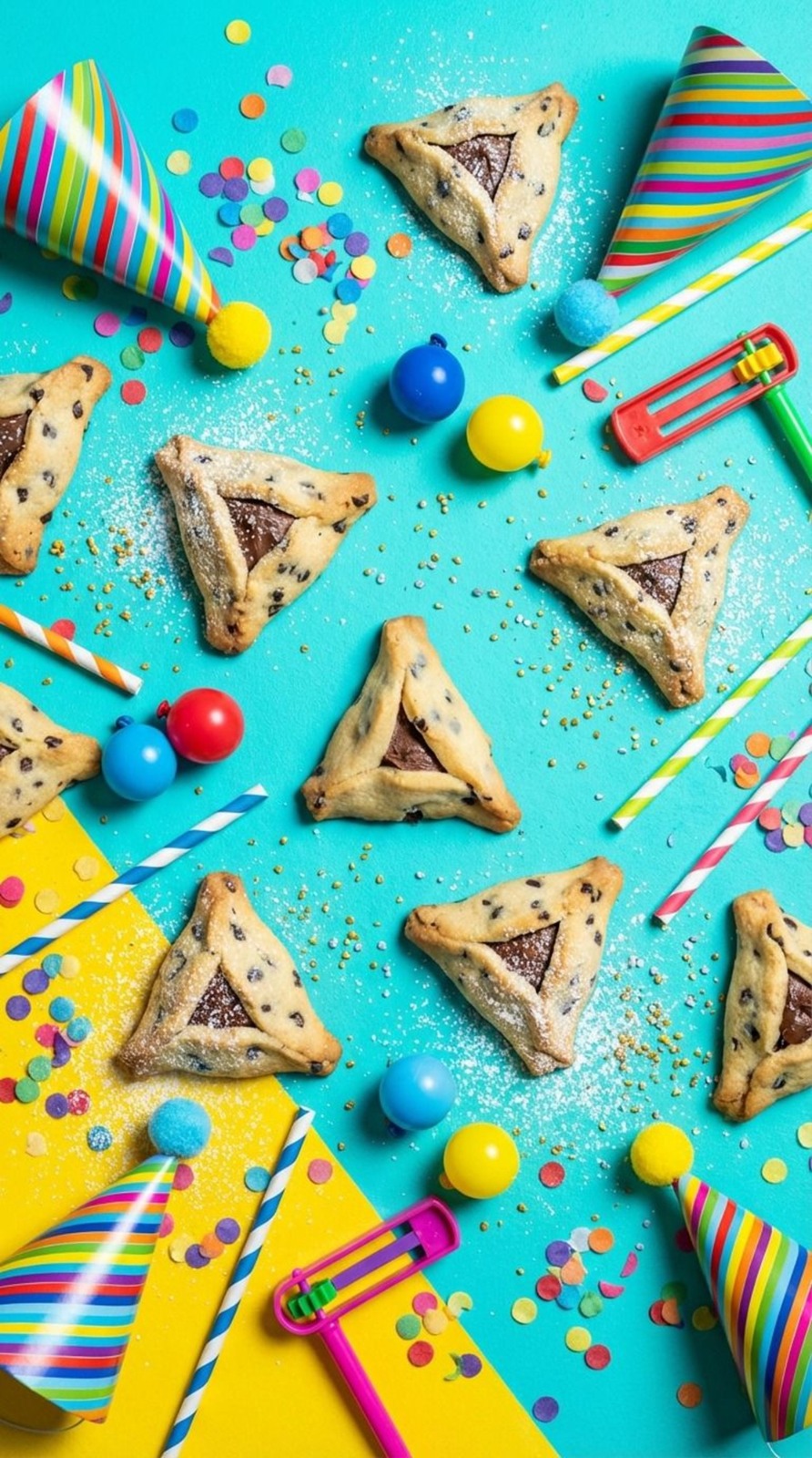 7. דלמטי – אוזני המן מבצק פריך נימוח במילוי בצק שוקולד צ׳יפס מילוי שוקולד.