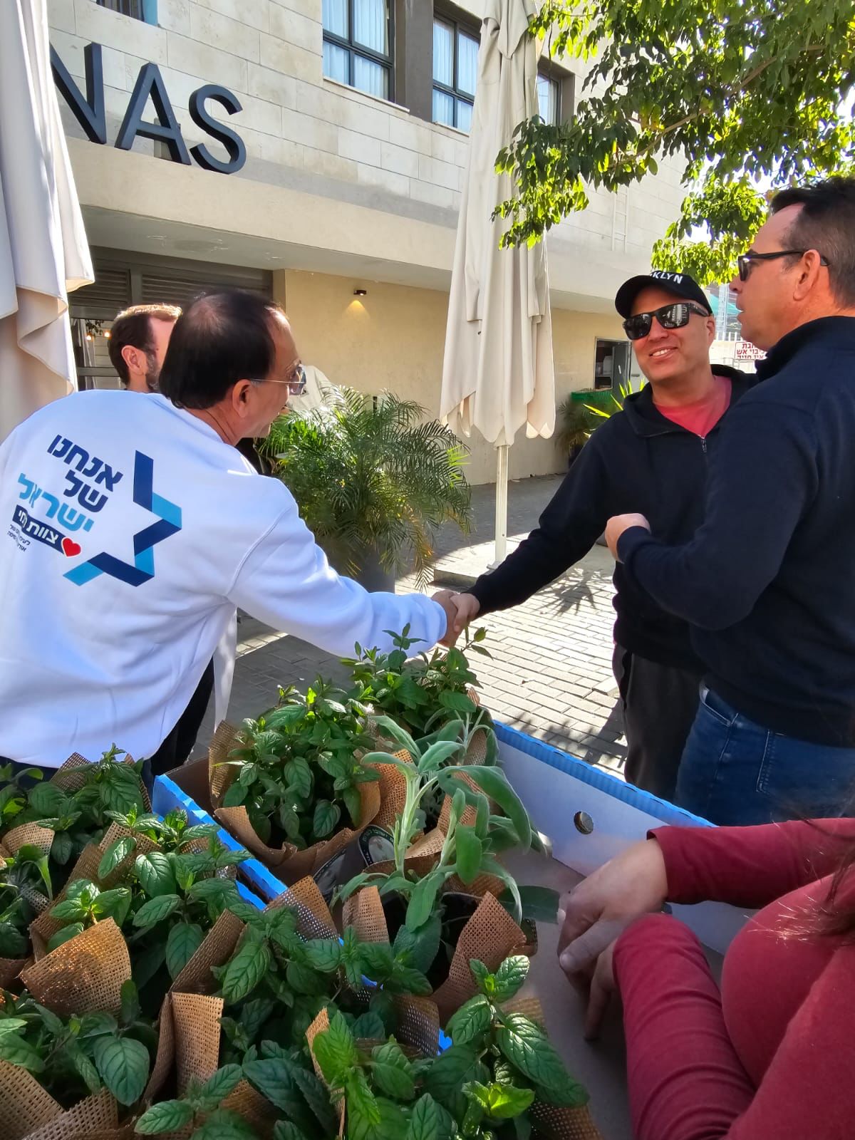 מבצע חלוקת עציצי תבלין לתושבי רחובות בהובלת זהר בלום