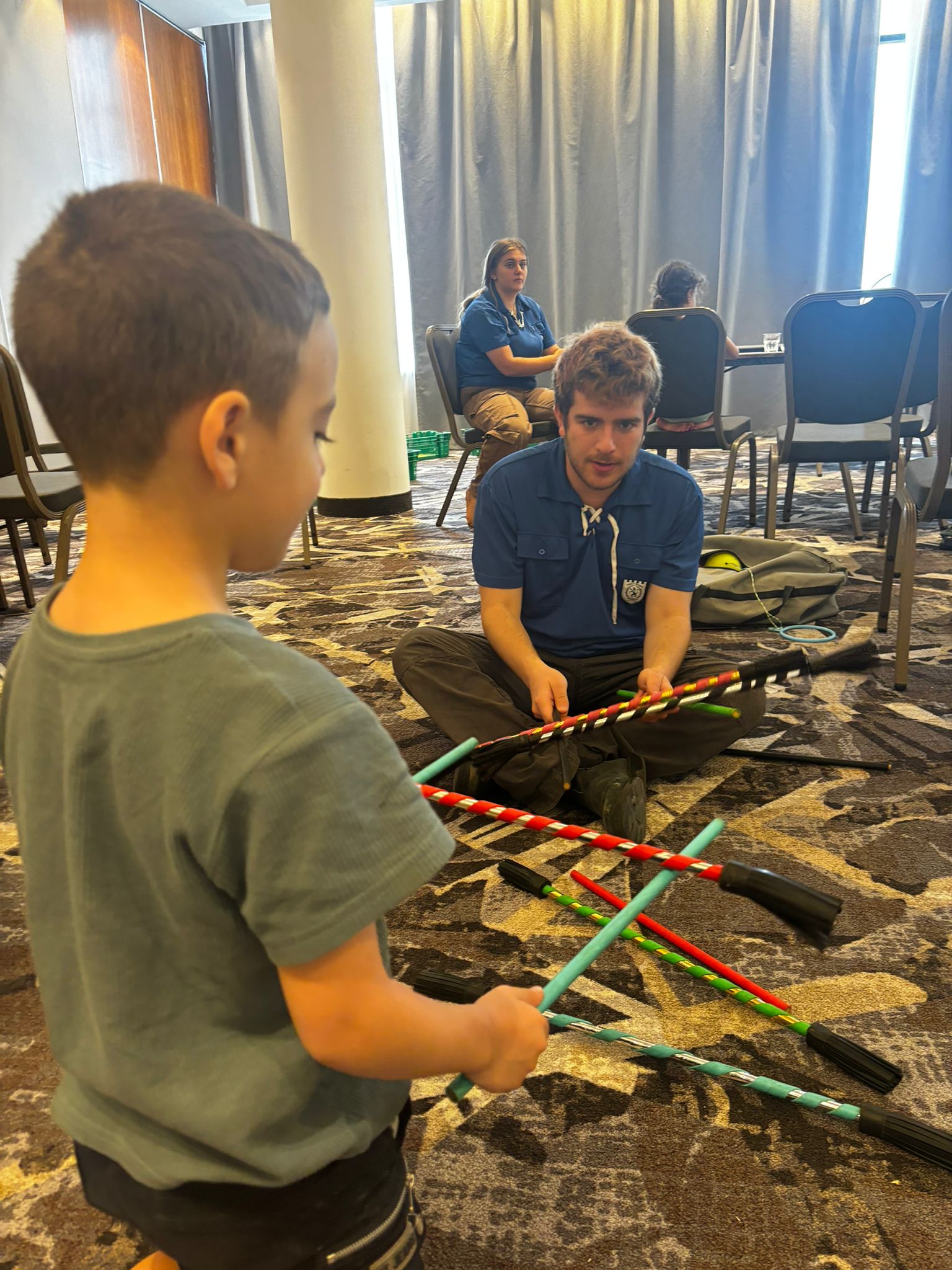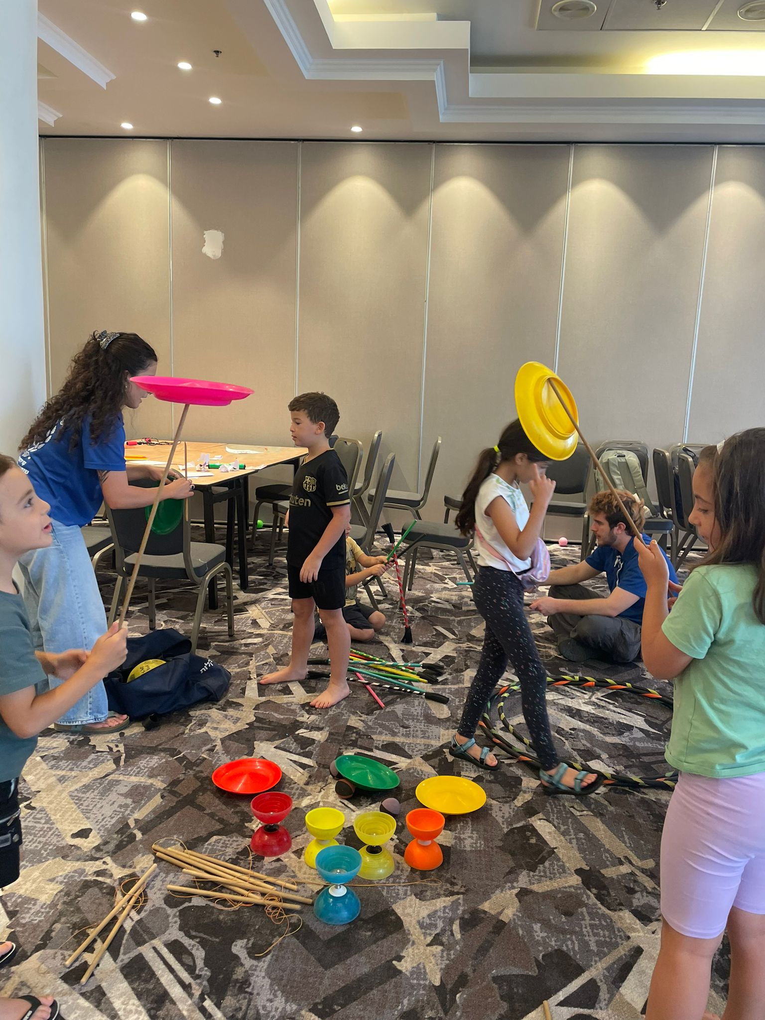 במלון שוהים עשרות ילדים שפונו מהעיר רחובות, והפעילות, אשר מתקיימת בשעות הבוקר, נועדה לספק מענה רגשי ומעשי לילדים ולהוריהם. המדריכים יצרו מרחב פתוח הכולל פינות יצירה, משחקים, ג’אגלינג ותחנות פעילות חופשית לכל הגילאים – במטרה לפרוק מתחים, לייצר תחושת שגרה ולחזק את תחושת הביטחון.