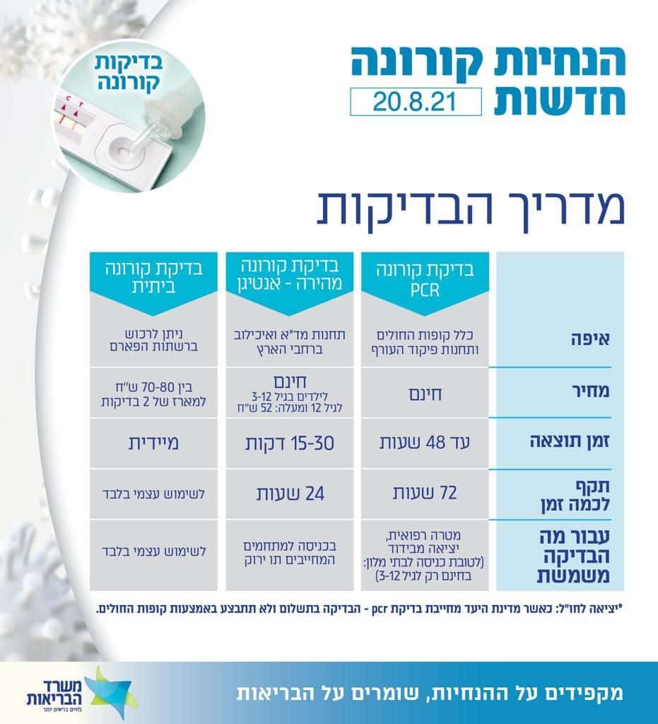 מערך הבדיקות המהירות -מגיל 12+ הבדיקות המהירות הן בתשלום.