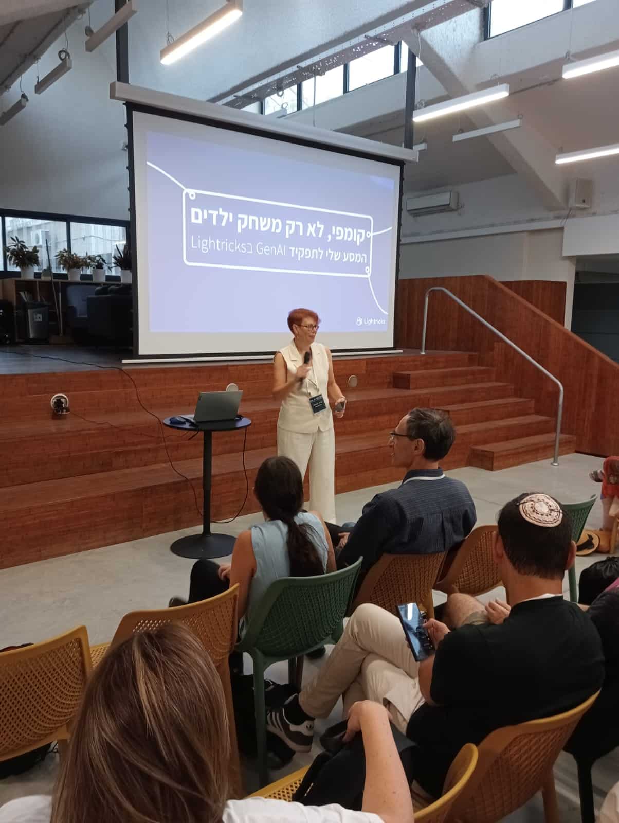 מאיה שושני מ-Lightricks הירושלמית סיפרה על המסע שלה לעולם ה-AI, אורי בז'רנו ואביחי אליאסי הדגימו את עוצמת ה-AI ביצירת חוויות אינטראקטיביות, אורית ליטמנוביץ' שיבר הציגה כיצד ניתן לספר סיפור אישי באמצעות AI, ויובל אבידני חשף את הפוטנציאל של מודלי שפה גדולים וסוכני AI.