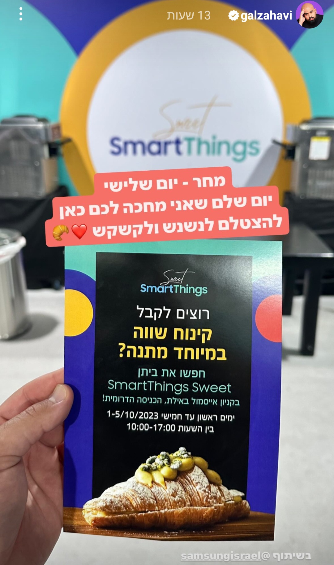 במסגרת הפעילות של סמסונג באילת, גל זהבי ומשתתפים נוספים יכינו בביתן סמסונג בקניון את הקינוחים האהובים ב-"Dinner Show", זאת באמצעות שימוש באפליקציית SmartThings המחברת בין כלל מכשירי הבית והמובייל של סמסונג. מדי שעה עגולה גל יעלה עם משפיעני אוכל נוספים ויציג את אופן הכנת הקינוח בדרכו ההומוריסטית והייחודית, כאשר בסיומו של המופע כל באי הביתן יזכו לטעום מהקינוח.