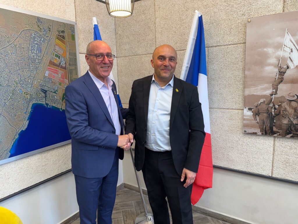 בפגישת עבודה עם ראש העירייה, בה השתתפו גם מנהלת קשרי החוץ בעירייה – אנה ליסון ורכזת קליטת עליה – נורה ביטון, סקר ראש העירייה את מאפייניה של העיר בדגש על האתגרים וההזדמנויות, ועדכן את השגריר לגבי הקשרים ההדוקים שהעיר מנהלת כבר שלושה עשורים עם העיר התאומה אנטיב שבצרפת הכוללים חילופי משלחות בתחומי ספורט, אומנות ותרבות בדגש על השתתפות אמנים הדדית בפסטיבלי הג'אז בשתי הערים. עוד עדכן ראש העירייה לגבי שיתוף הפעולה עם העיר ניס עמה נחתם מזכר הבנות בנושאי אנרגיה מתחדשת, חקלאות ימית, עיר חכמה ועוד. עוד עלה בפגישה עניין הטיסות הישירות משדה התעופה "רמון" לצרפת וסוכם מצד שני הצדדים, כי יש לחדש את הקשר האווירי הן לטובת קהילה הצרפתית והן לטובת קידום התיירות. באותה נשימה, שיבח ראש העירייה את הקהילה הצרפתית באילת שסייעה גם היא בתחילת המלחמה בתרומות למפונים ולחיילים ומעורה בקהילה כל השנה.
