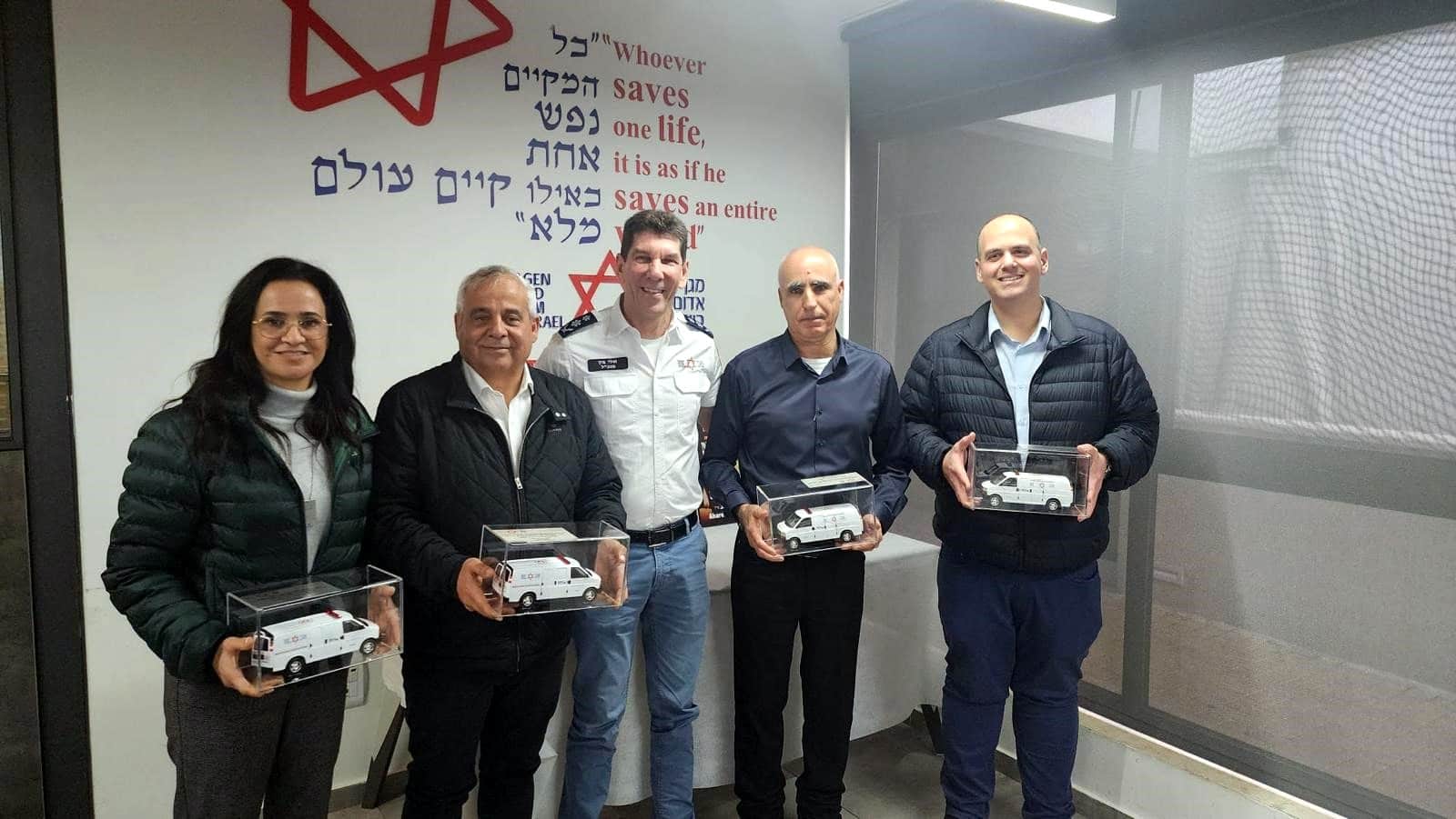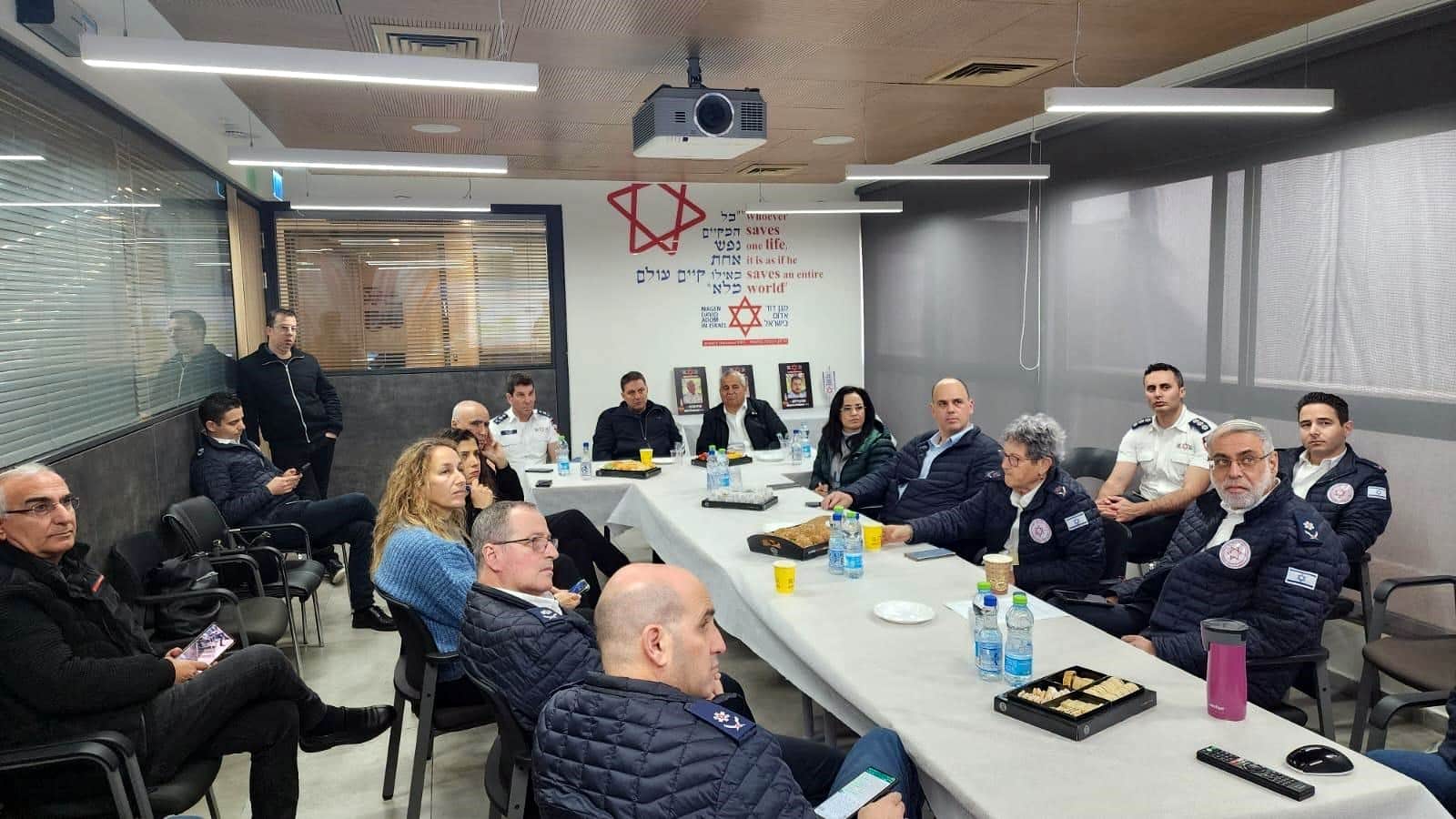 יו"ר מרכז השלטון המקומי וראש עיריית מודיעין-מכבים-רעות חיים ביבס, ראש עיריית אור יהודה ליאת שוחט, ראש עיריית דימונה בני ביטון, ראש עיריית בת ים צביקה ברוט וראש המועצה המקומית כסרא סמיע יאסר ג'דבאן ביקרו במוקד הלאומי של מגן דוד אדום בקרית אונו ופגשו את מנכ"ל מד"א אלי בין, בכירי הארגון ואת צוותי מד"א שהיו בשטח בימים הראשונים של מלחמת "חרבות ברזל".
