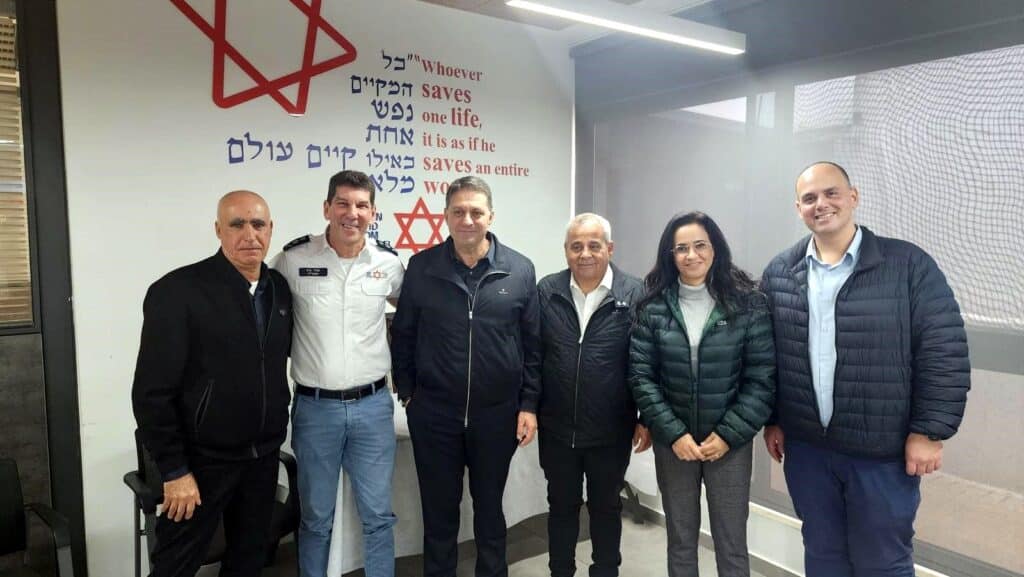 יו"ר מרכז השלטון המקומי וראש עיריית מודיעין-מכבים-רעות חיים ביבס, ראש עיריית אור יהודה ליאת שוחט, ראש עיריית דימונה בני ביטון, ראש עיריית בת ים צביקה ברוט וראש המועצה המקומית כסרא סמיע יאסר ג'דבאן ביקרו במוקד הלאומי של מגן דוד אדום בקרית אונו ופגשו את מנכ"ל מד"א אלי בין, בכירי הארגון ואת צוותי מד"א שהיו בשטח בימים הראשונים של מלחמת "חרבות ברזל".