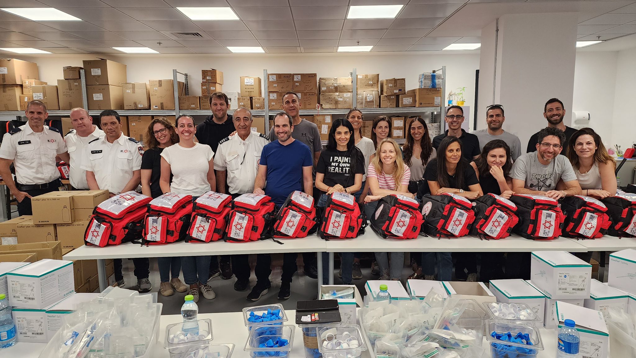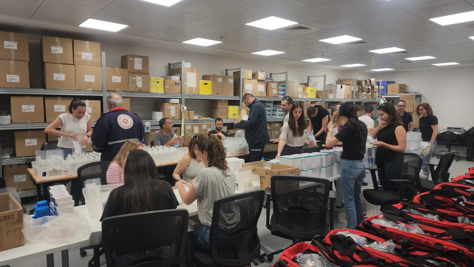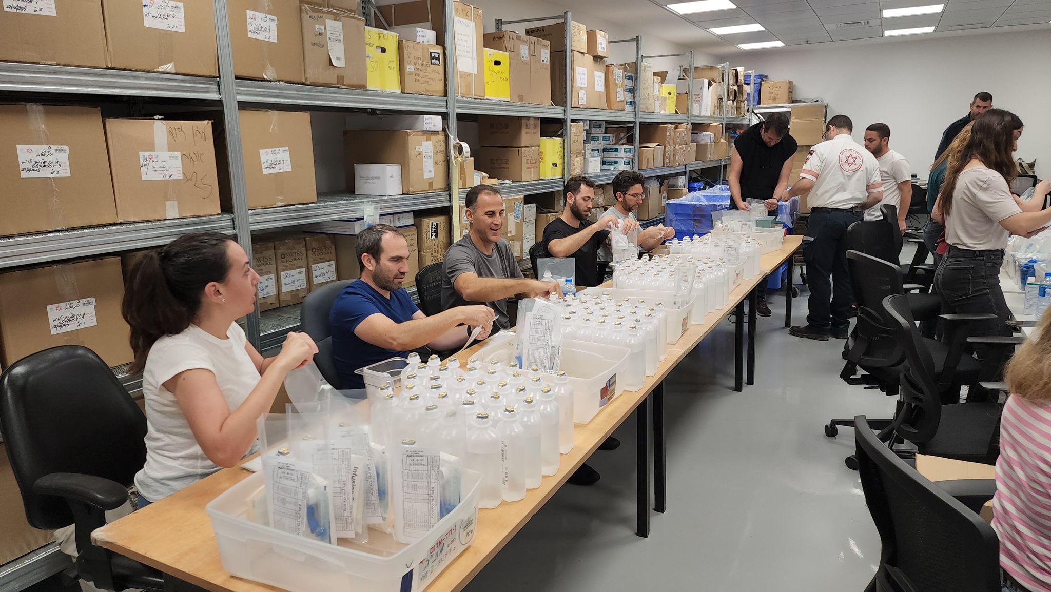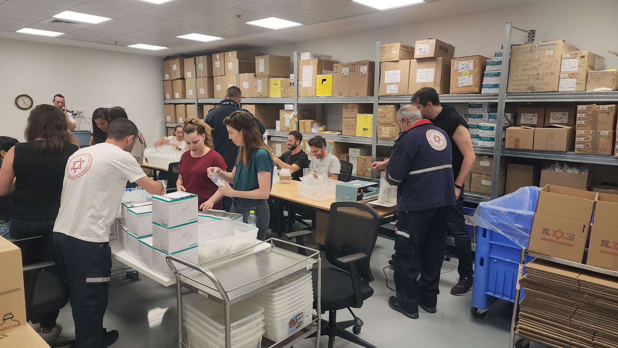 העובדים נרתמו למשימת התנדבות במטרה לסייע להכין מאות ערכות של עירוי נוזלים ותיקי ציוד רפואי לכונני התגובה המיידית של מד"א.