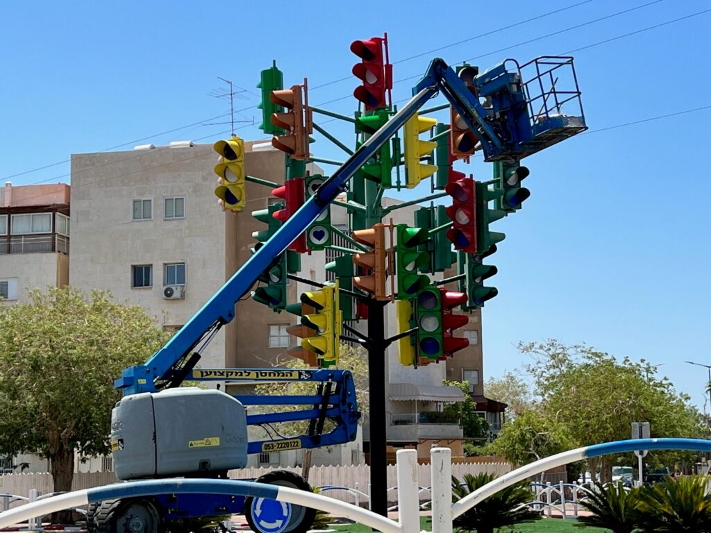 כיכר הרמזורים של אילת הממוקמת בצומת הרחובות ששת ימים/שדרות ארגמן מותחת בימים אלה פנים.