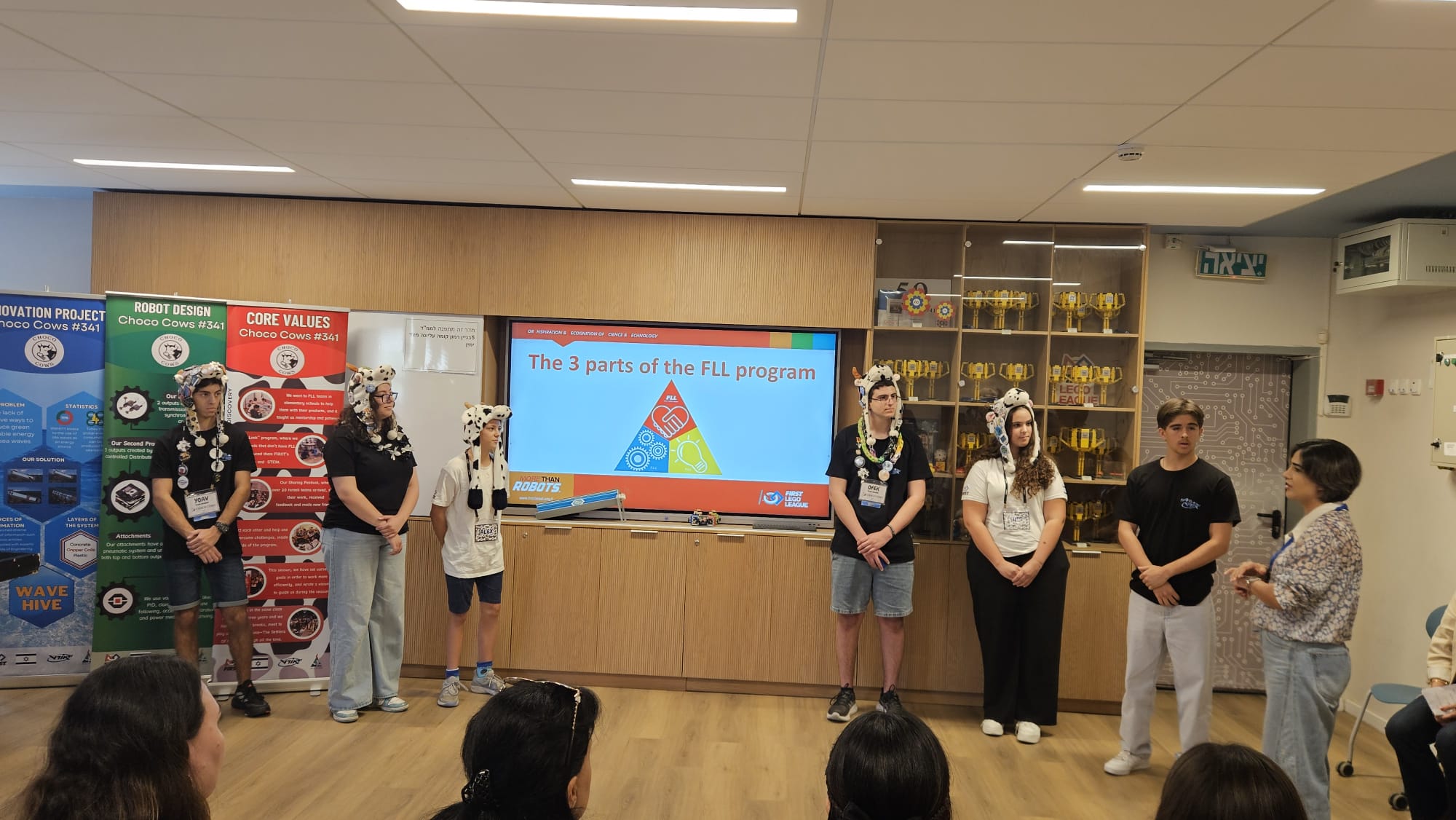 לבסוף נבחרת הרובוטיקה FLL הציגו בפני המשלחת את תוכנית העבודה הייחודית שלהם בכך שתלמידי השכבה הבוגרת בתיכון הם המנטורים והחונכים של השכבות הצעירות יותר בחטיבה.