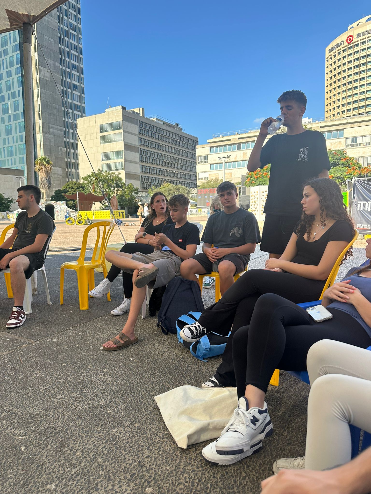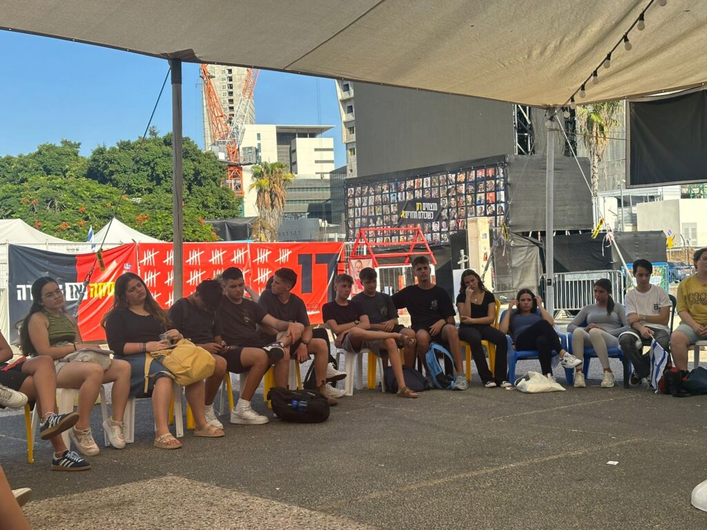 עשרות תלמידי תיכון 'שקמה דרכא' שבקיבוץ יד מרדכי הגיעו אל כיכר החטופים בתל אביב, לאות הזדהות עם משפחות החטופים היקרות.