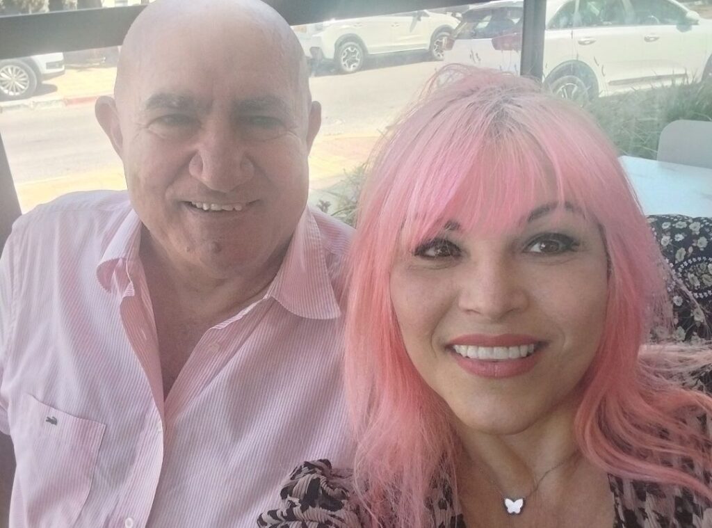 המפכ"ל לשעבר משה קראדי ואשת יחסי הציבור יוספה ברק, נצפו מדסקסים ענייני פוליטיקה, בקפה שבע במזכרת בתיה.