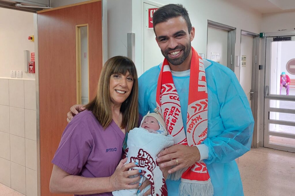 המיילדת שולי דנין, שהיא גם אוהדת מושבעת של הפועל ב"ש, ליוותה את טניה ומיגל בלידה (וגם במשחק..):