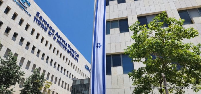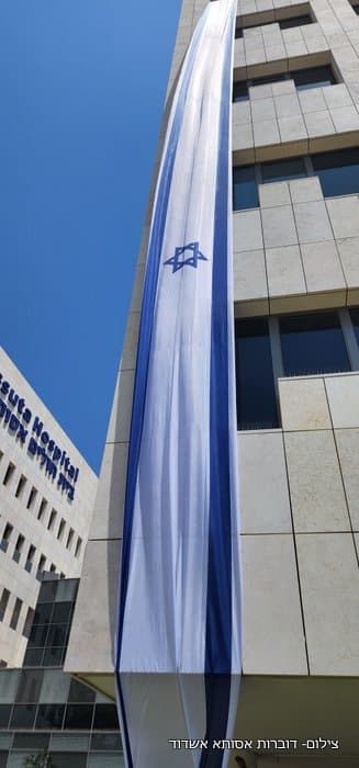 ביה"ח הציבורי אסותא אשדוד: דגל ישראל באורך של כ 30 מטר על בניין בית החולים.