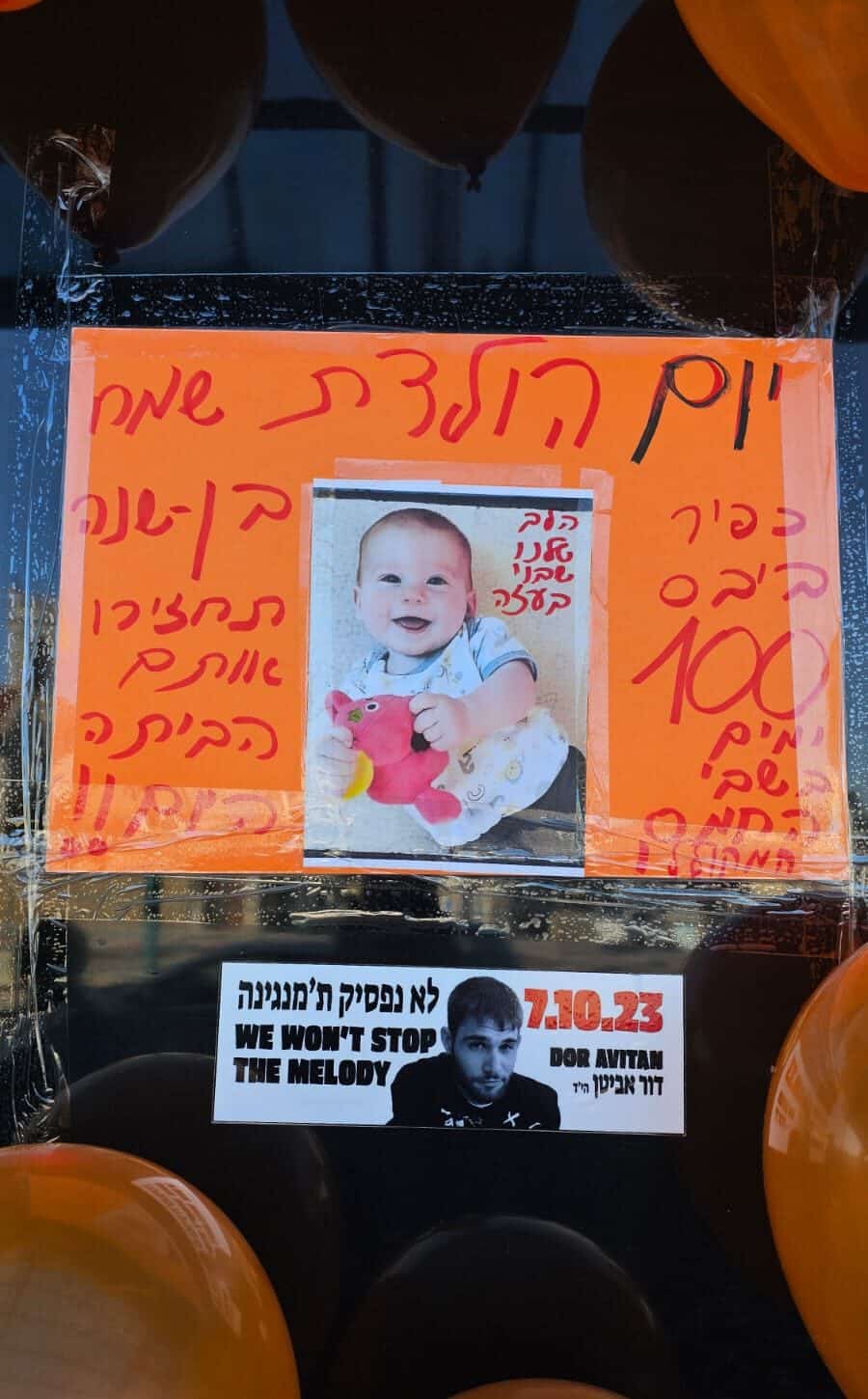 ברחוב הרצל בוצעה מחווה ייחודית מחוץ לחנויות – וניתלו בלונים כתומים וכרזות עם קריאה לבואו של התינוק הג'ינג'י שכבש את כולנו.