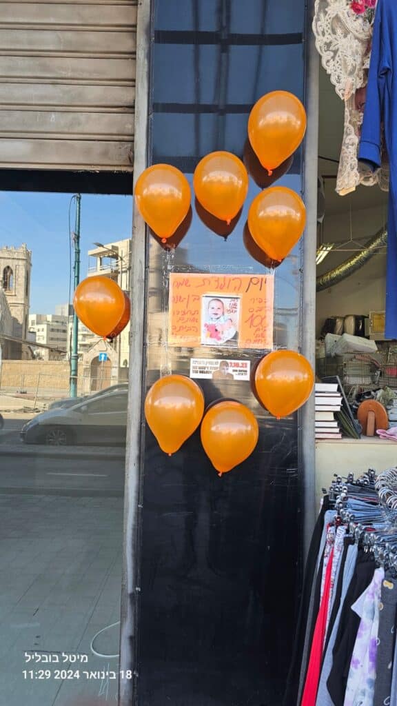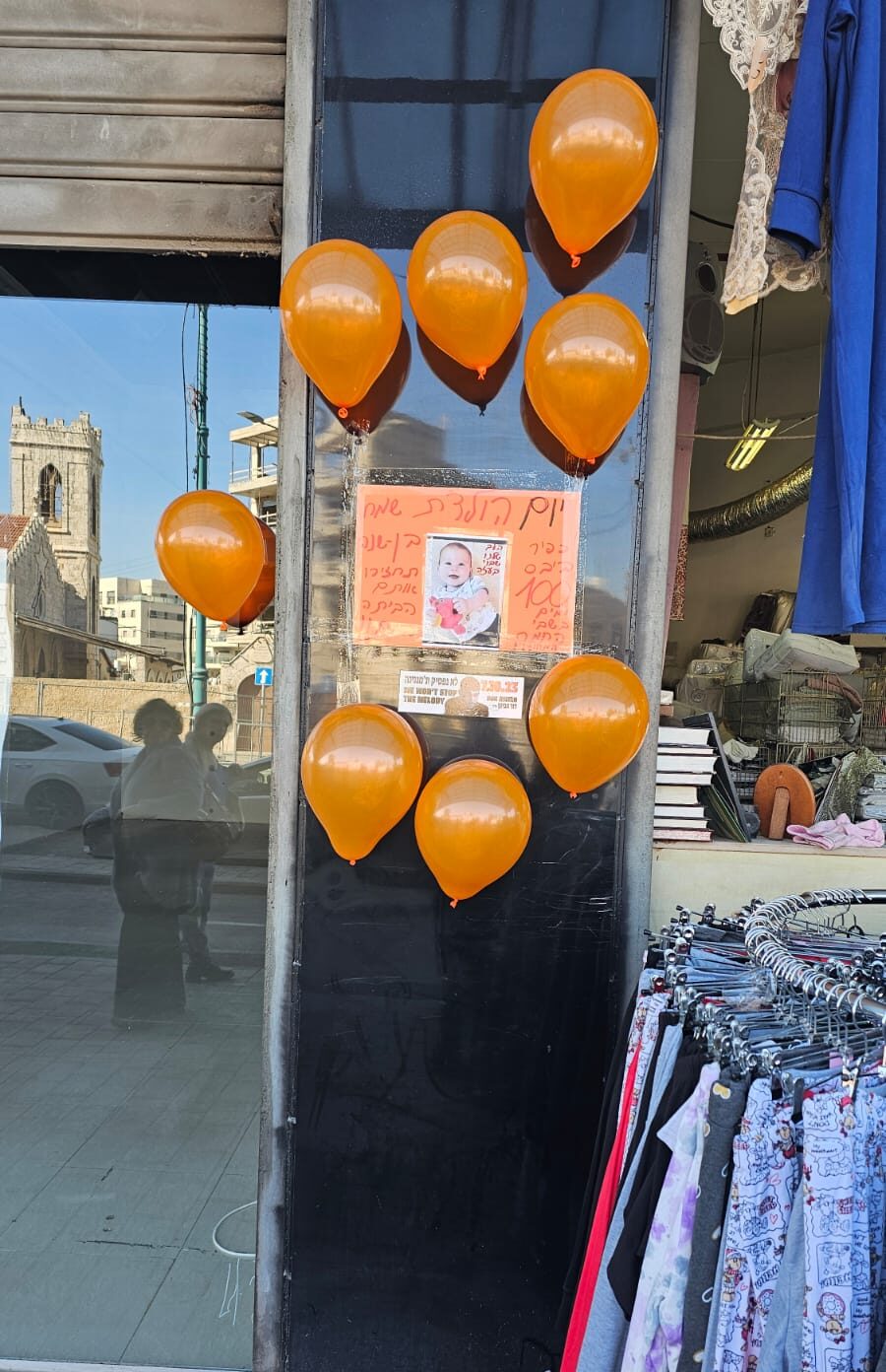 ברחוב הרצל בוצעה מחווה ייחודית מחוץ לחנויות – וניתלו בלונים כתומים וכרזות עם קריאה לבואו של התינוק הג'ינג'י שכבש את כולנו.