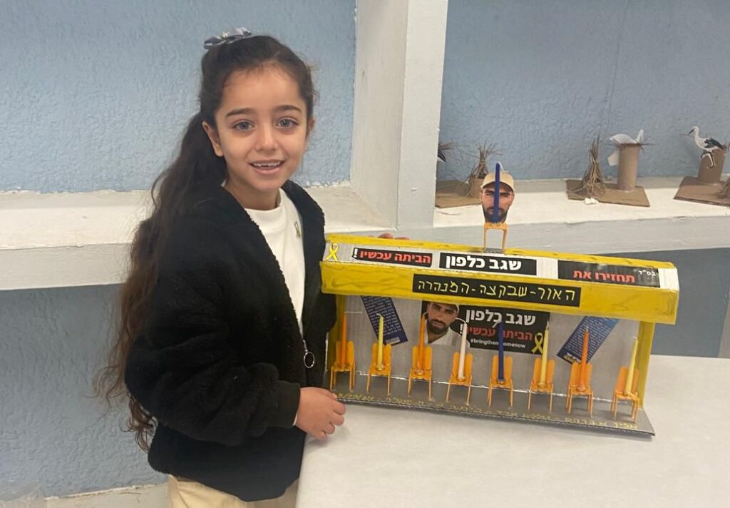 אלין יצרה חנוכייה מיוחדת ומלאת משמעות, שמוקדשת לנושא החטופים, ובפרט לחטוף שגב כלפון.