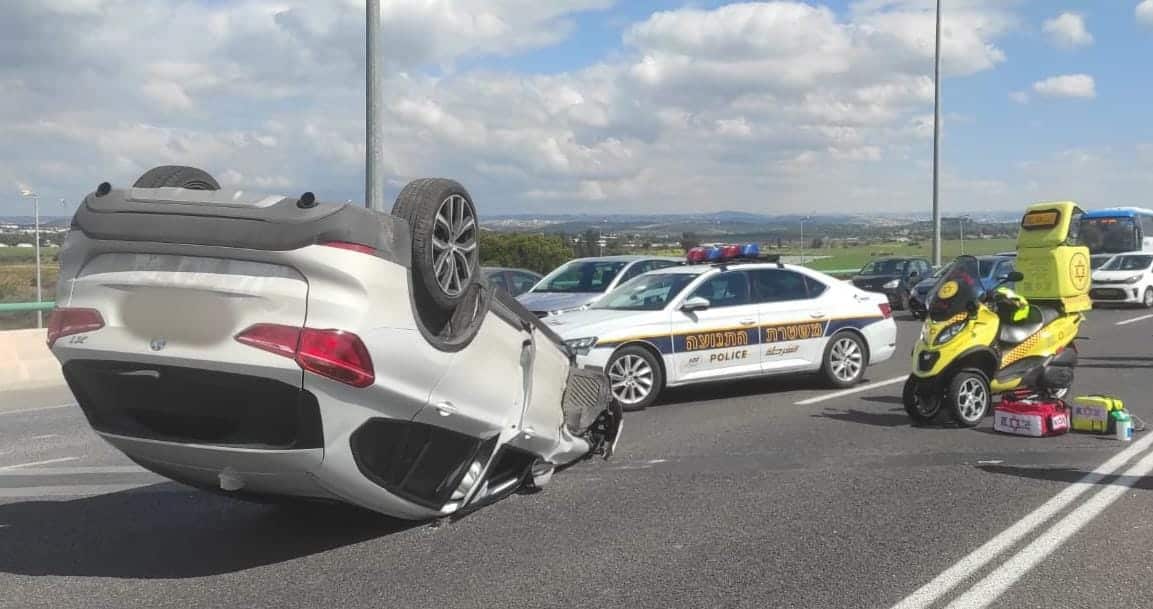 מחלף לוד: רכב התהפך, הנהג הובהל לשיבא